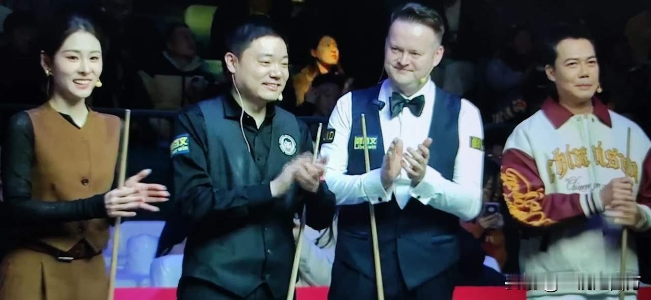 在成都进行的“丁俊晖和他的朋友们”表演赛,不仅有丁俊晖、肖恩·墨菲、马克·艾伦几位世界顶级高手,还有川籍选手周跃龙,以及著名歌手张碧晨和谢天华客串参加,丁俊晖与张碧晨搭档对阵墨菲和谢天华,让现场欢声笑语不断。