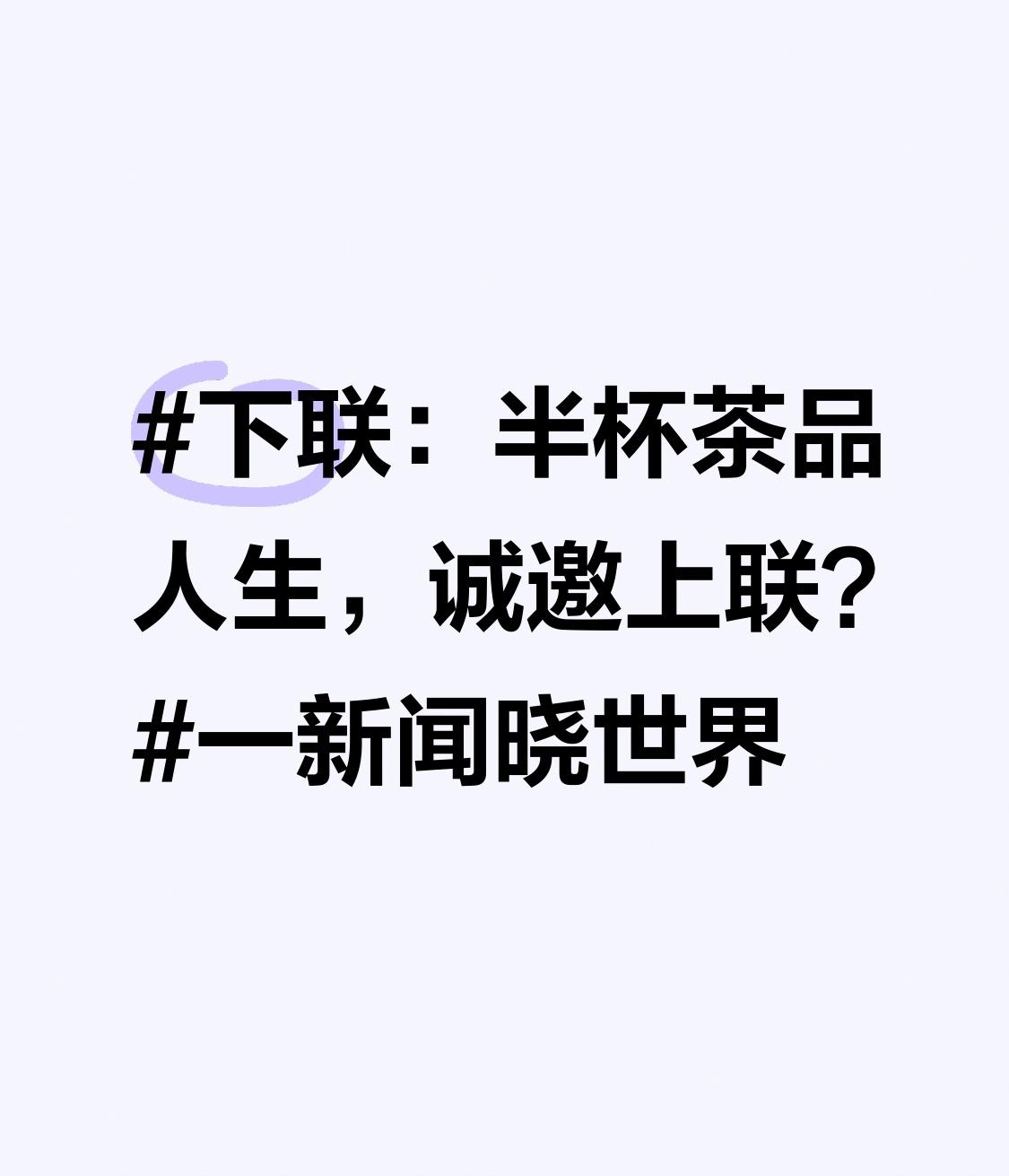 下联:半杯茶品人生,诚邀上联?一新闻晓世界