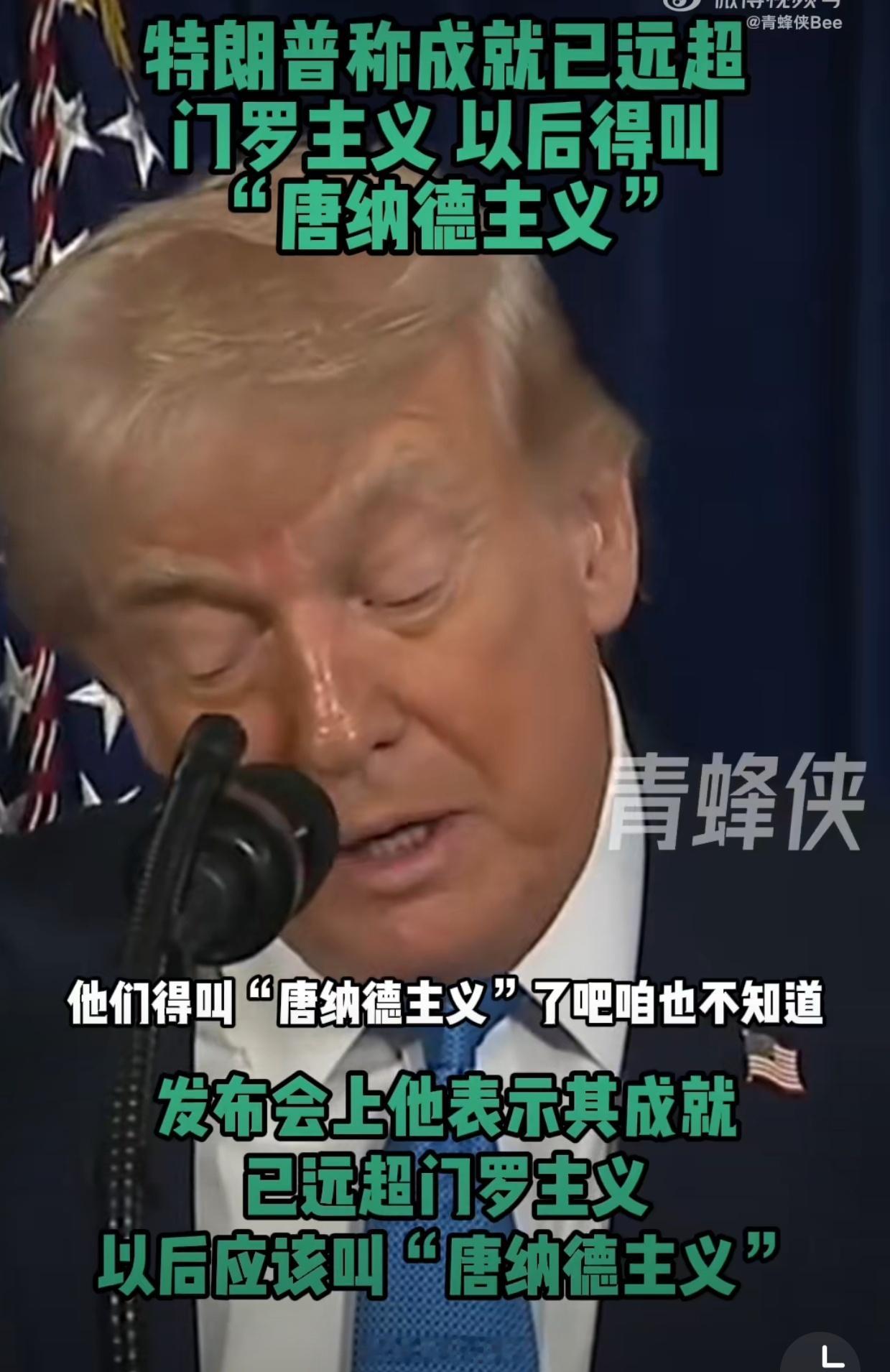 特朗普将门罗主义改名唐纳德主义东晋时,大将桓温因为战败被史官记录,桓温以性命威胁都没能达成,于是只能抚枕而叹:"不能流芳百世,亦当遗臭万年。"大统领现在的无数做法不像是好好治国,而像是为了能给自己留名而不择手段。什么总统山搞雕像啦,什么炸药和平奖啦,什么门罗主义改成唐纳德主义啦……感觉都是为了给自己留名而搞的事情。我觉得“不能流芳百世亦当遗臭万年”这句话挺符合大统领目前的情况的热点观点