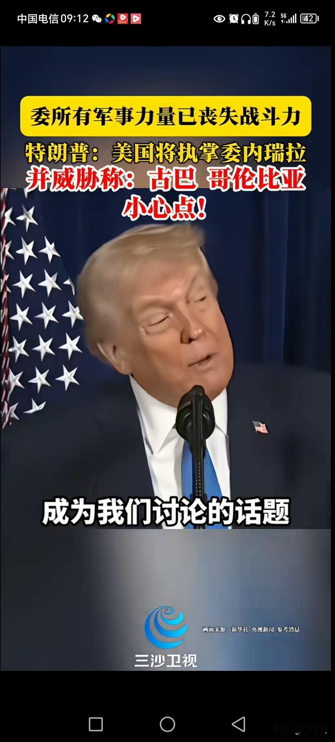 特朗普点明,古巴,哥伦比亚,小心点。 委内瑞拉军事力量全丧失,美国将接管委内瑞拉。 特朗普越战越勇,委内瑞拉总统被抓后。 特朗普应该更加自信了。 古巴,哥伦比亚,这些国家现在应该是在加防,总统安保。