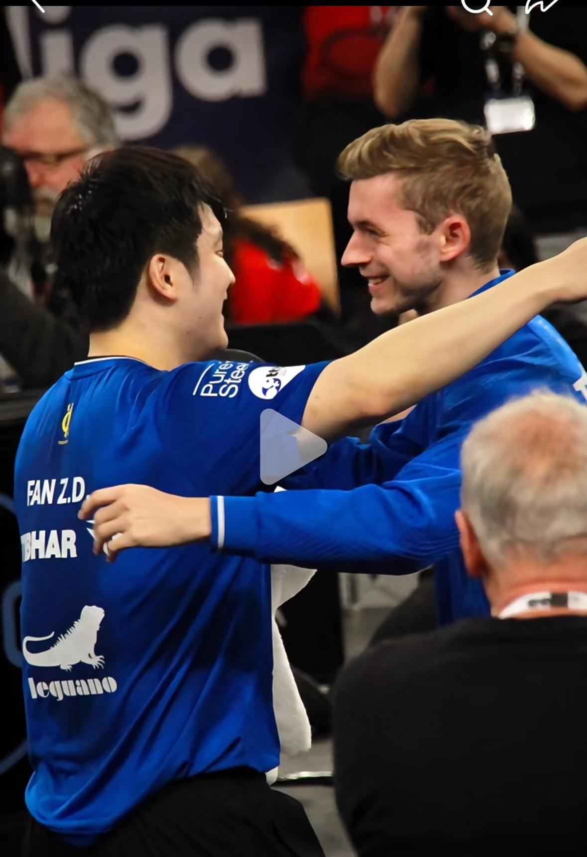 奥恰洛夫评价樊振东:比以前还厉害👍 德国杯,樊振东在决赛中3:0奥恰洛夫,樊振东带队夺冠后给球迷签名并合影! 太羡慕这位近距离和樊振东合影 的小朋友,躺在东哥怀里, 手拿签名,太幸福啦! 夺冠时刻, 弗朗西斯卡拥抱樊振东, 那一刻真的太美好😊, 太感动🥲, 顾星宇老师说, 樊振东把最好的中国样子带到了 世界面前! 昨天德国杯的门票太值了, 连看樊振东的四场比赛, 还拿到了签名, 还合影, 不白来,羡慕! 特别奥恰洛夫在赛后采访说: “樊振东太强了, 再次与他交手, 他没有变, 还是那么强, 甚至比以前更加厉害👍, 他在中国赢我, 在瑞典赢我, 在东京赢我, 最早樊振东在德国赢过我, 现在还在德国赢我, 不可思议啊!”