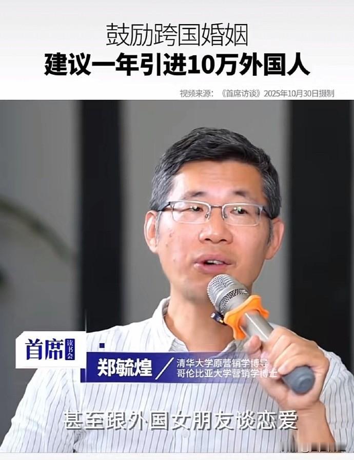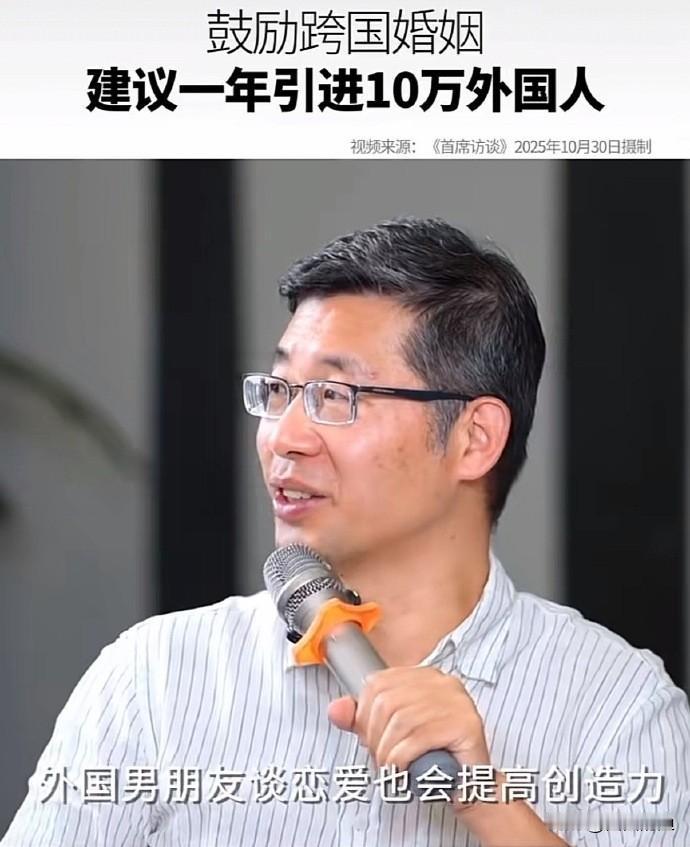 清华专家又整新活了!说咱中国“创新贫瘠”?简单!大手一挥:每年引进十万外国人定居中国!还重点提示:鼓励多跟中国人谈!恋!爱! 好家伙,这药方开得真“猛”!敢情咱十几亿人的创造力,靠进口“洋对象”就能批量解决了?跟老外拉拉小手、亲亲小嘴,灵感就“噌噌”往外冒了?创造力是这么廉价就能“嫁接”来的吗?这思路,跟指望吃啥补啥有啥区别? 专家这脑回路,怕不是把复杂的国家创新体系建设,简化成了“爱情化学反应实验”?离谱他妈给离谱开门——离谱到家了!有这功夫,不如多琢磨点正经提升教育、科研环境的办法。靠“指标式引进”和“批量生产爱情”提高创造力?我看专家这建议,纯属扯淡!