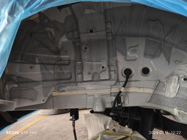 喷底盘装甲 新车第一天我就直接去喷底盘装甲了,本来是不想喷的,奈何老家的路太烂了,再加上老家每年的天气都非常的潮湿,所以就决定要喷底盘装甲了,还没买车之前就看这款车了,好多车友都说爱生锈,就让我更加决定的要喷了,基本该拆的地方都拆完了,就是油箱我不让拆,细节处理的还挺好,该包的地方都包了,还有就是原车弄的底盘装甲是真的辣鸡,该喷的地方又不喷😅,我自带的材料,买的3M品牌的底盘装甲,8瓶2升的,工时费是450