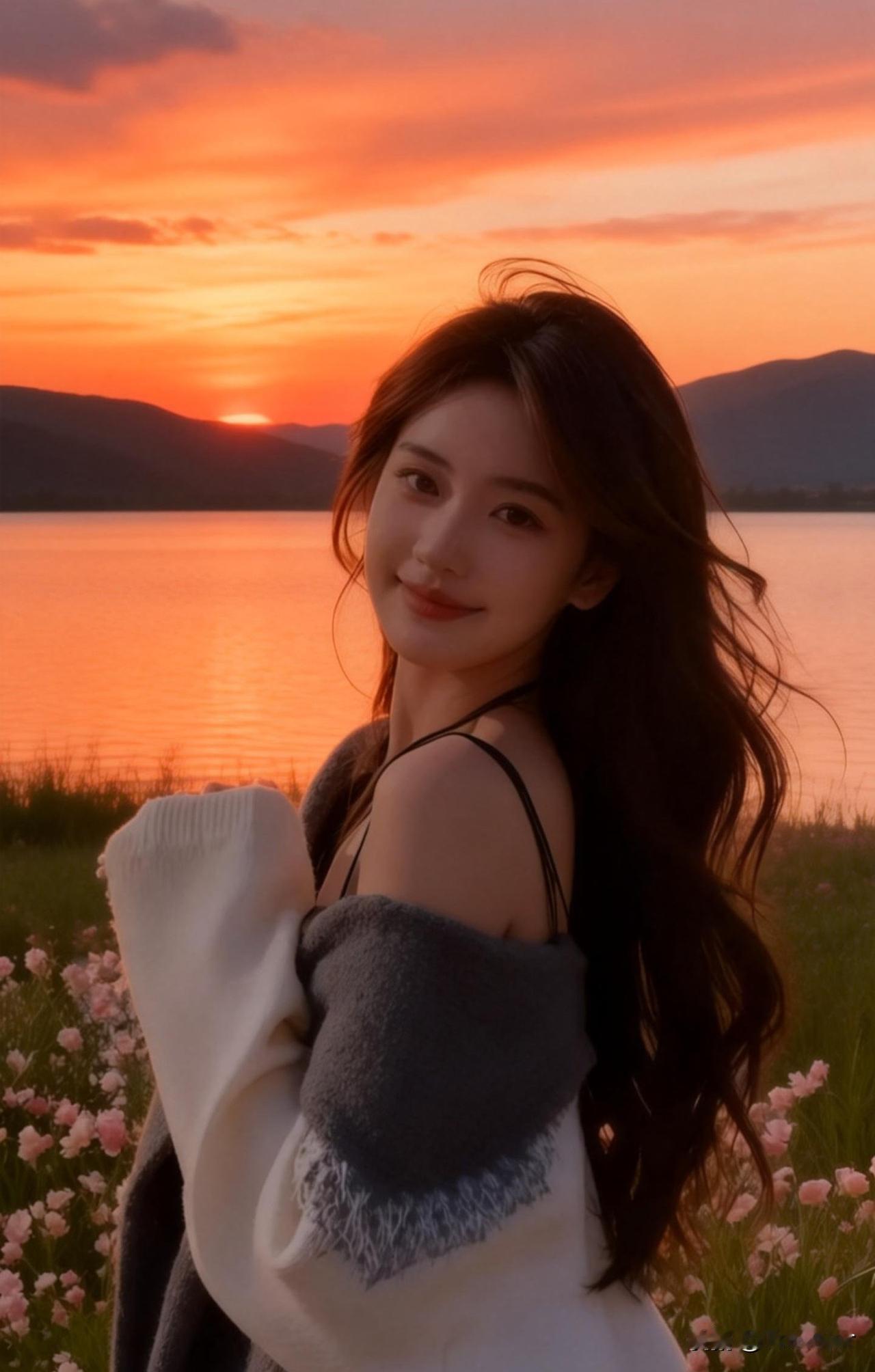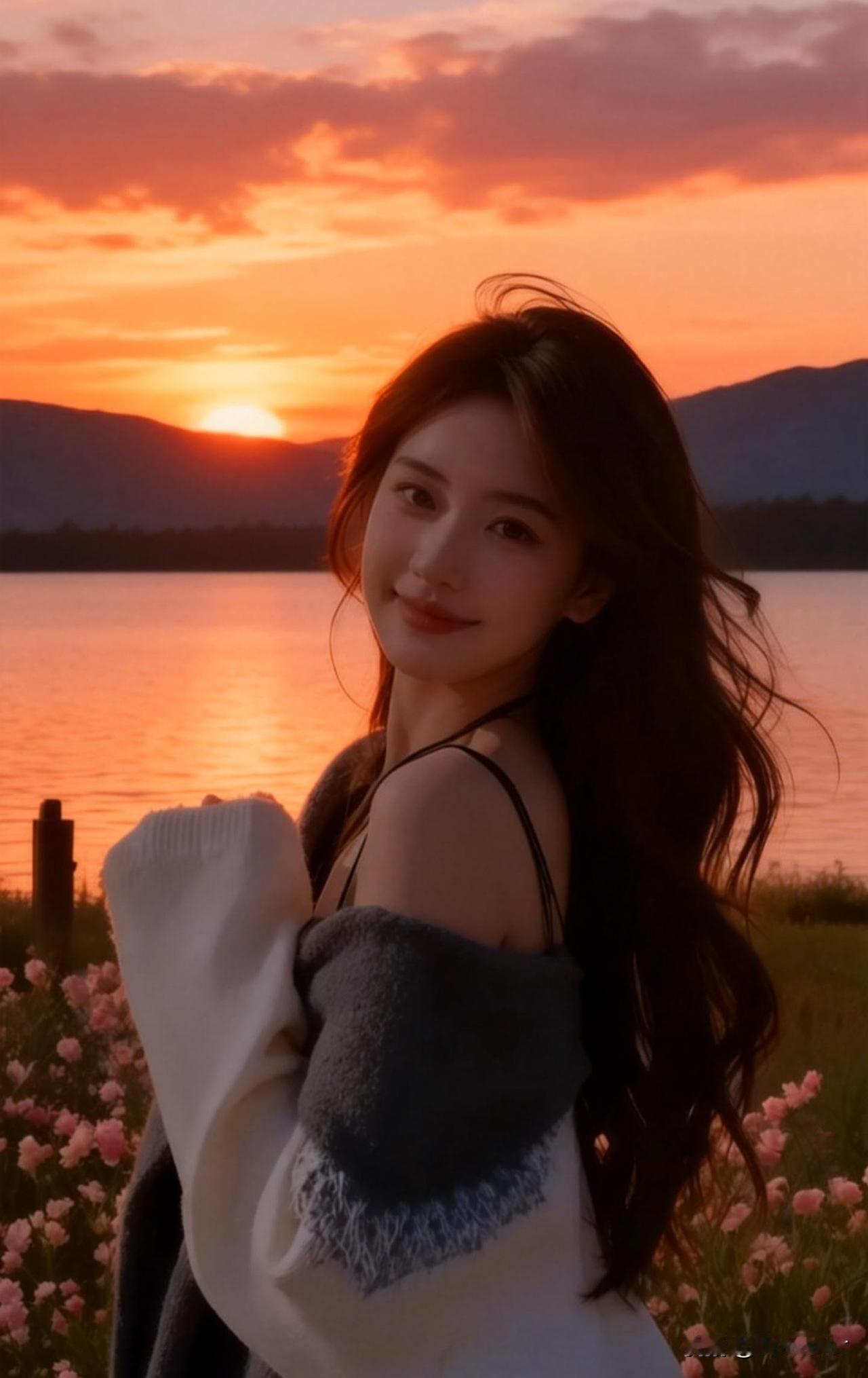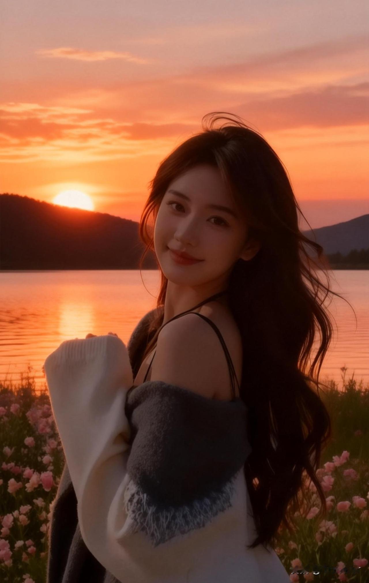 夕阳下的温柔微笑,湖畔的浪漫时光🌅💕