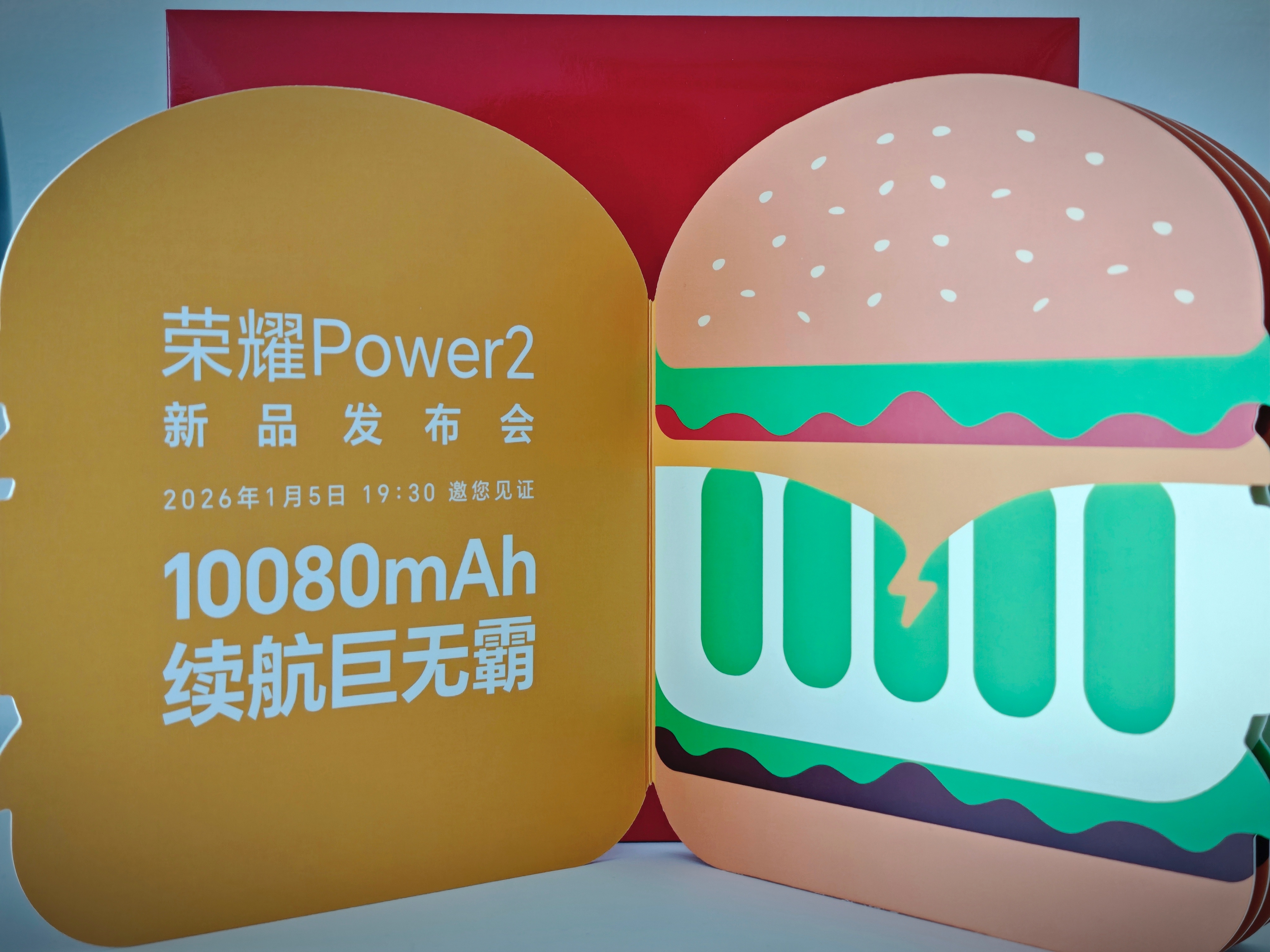 「转发+评论」抽一位朋友送出!收到了荣耀Power2的邀请函,里面有五张巨无霸汉堡兑换券。这次新机搭载了10080mAh的超大电池,确实也是量大管饱。今晚19:30,一起看看这款手机圈里的续航巨无霸!