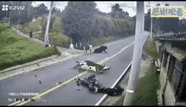 这种路最怕突然窜出来一辆车一个人,就是没想到会突然窜出来一头牛,两败俱伤,骑车大哥估计得多晕一会