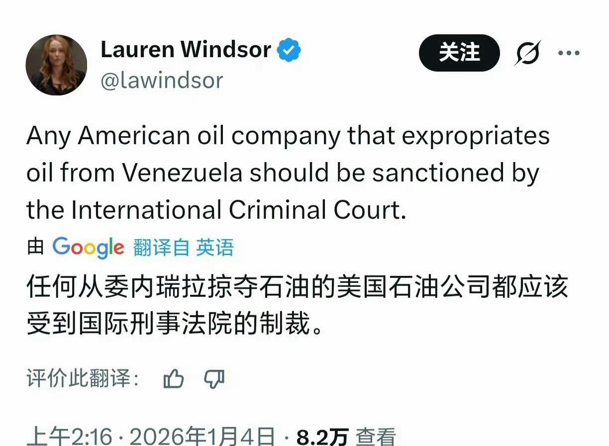 美国前网球运动员玛蒂娜·纳芙拉蒂洛娃:任何从委内瑞拉掠夺石油的美国石油公司都应该受到国际刑事法院的制裁