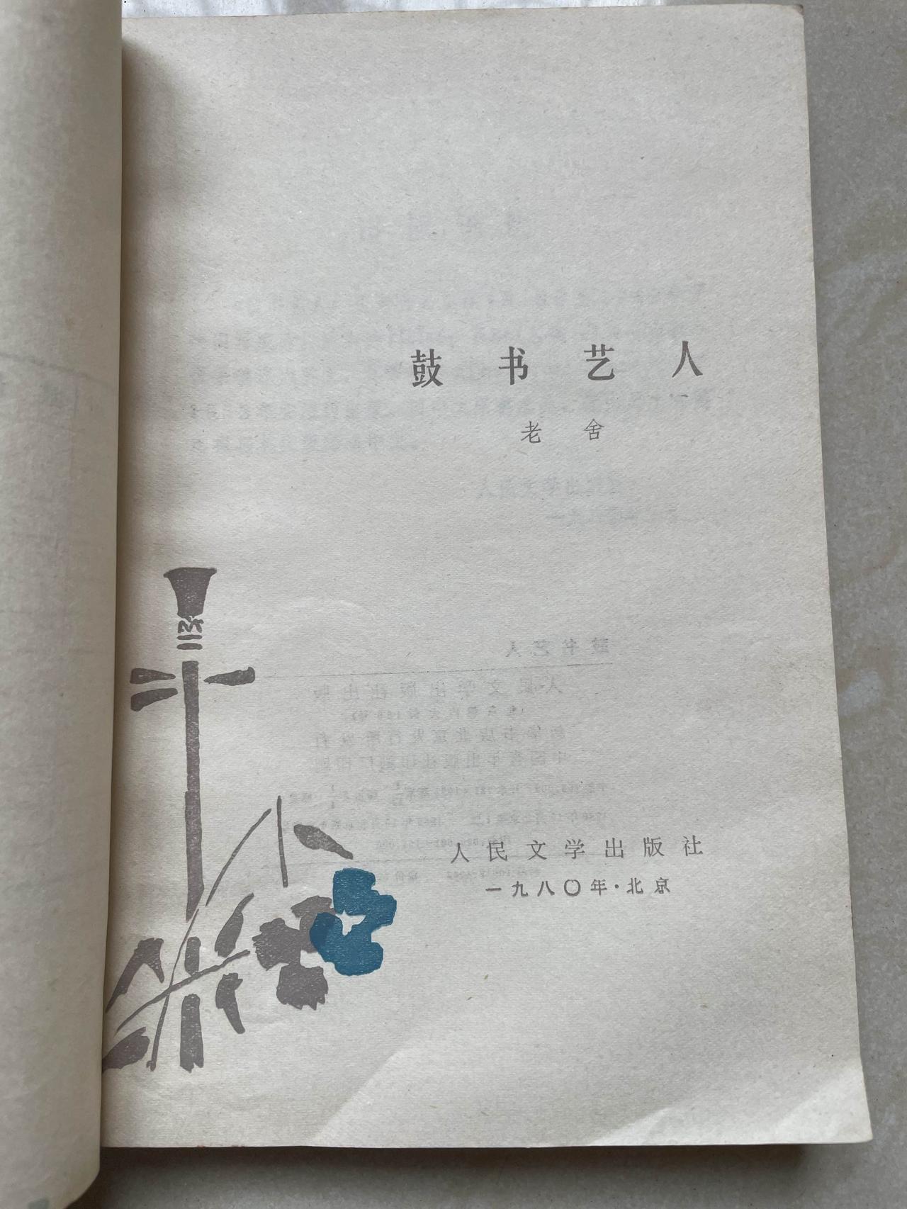 家中珍藏一本好书,老舍先生的《故书艺人》,一直以为老舍先生的《茶馆》很有名气,没有想到这部《故书艺人》也是名著。 这本书珍藏在家中有四十多年了,打算出手给喜欢老书旧书的人,但不知出手价格多少?