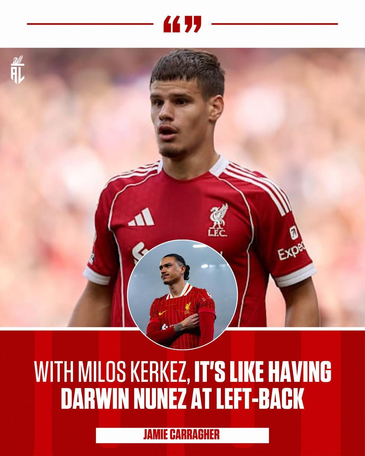 【别扭的凯尔凯兹】富勒姆2-2利物浦的赛后,卡拉格在天空体育锐评凯尔凯兹:“我不觉得他应该每周都首发。队里还有像罗伯逊这样非常出色的球员,同样需要比赛时间。当罗伯逊出场时,整体来看,他的表现要比凯尔凯兹更稳定一些。” “看凯尔凯兹踢球有时候挺有意思的。我以前形容过阿诺德,说他就像踢右后卫的德布劳内。但有些时候你看凯尔凯兹,就像是让努涅斯去踢左后卫😂,场面有点失控。他几乎没有太多思考,拿球就是低头往前冲,很少抬头观察,也很少真正把球和队友连起来。”富勒姆2-2利物浦