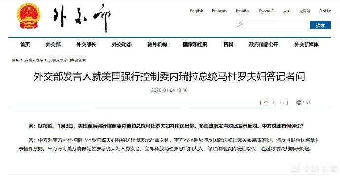 中方呼吁美方立即释放马杜罗,通过对话解决问题。这基本上是不可能实现的,但为啥明知道不可能实现,还是要呼吁呢?这就是向各国表明一个立场,也就说中方绝不会采取类似美国这样的行动。虽然同样是G2之一,我们中国比你们美国地道多了。当然,也会出现君子畏德,小人畏威的情况,这就看你怎么取舍了?