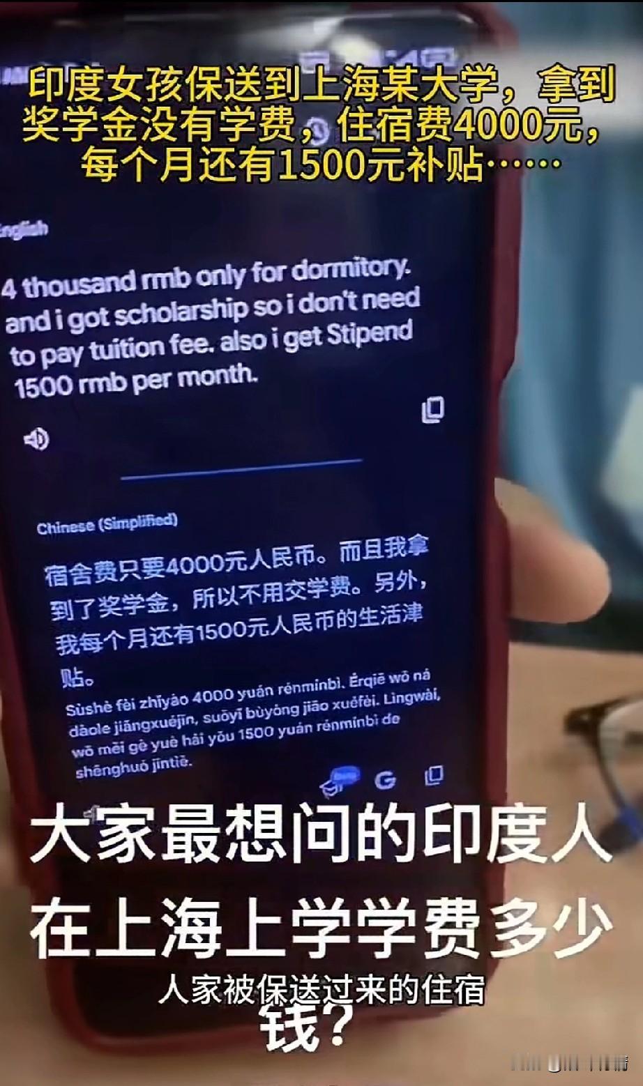 女生在火车上遇到了一位印度女子,通过翻译软件得知,该印度女子是前往上海大学上学。 她被保送到了上海大学,每个月有4000元住宿费补贴,但是因为她, 拿到了奖学金,所以是不用交学费的。 而且每个月还会给她发1500元的生活津贴,这足够她在学校的伙食费!加上住宿费的补贴,证明印度女生每个月可以拿到5500元的补助! 她不禁感慨,印度人口那么多,还那么多卷,该女生是多么的不容易,才能被保送到上海大学上学,而且学费全免,还有高额的补助! 就在她说出这番话之后,印度女子嘿嘿一笑,表示这没有那么困难,因为她是印度人,通过移民中介进行了操作,只需要一些纸质的证明,就可以直接去上海大学上学了! 通过翻译软件给女子看了看,女子一听中介操作,眉头紧皱,瞬间明白了其中的门道,将由崇拜变为了叹息,她觉得自己当时拼命学习也没有考上上海大学,而如今眼前的印度女子,居然这么容易就进入了上海大学! 这让她觉得自己是小丑,不过她也没有打击这名印度女生的想法,还是鼓励对方要好好学习,毕竟上海大学有这么好的条件?将来学成归国之后也能报销印度。 没想到女子刚说完这番鼓励的话,这名印度女生表示自己毕业后并不想回去印度,因为印度对女性的压迫太严重了,不如待在中国,毕竟中国才是未来,现在中国发展的这么好。 她在这里才是最明确的选择,如果将来能够在这边站稳了脚,她还想把自己的父母接过来,让她们也过上好日子,她听说上海是一座包容的城市,就问女生是这样吗? 女生犹豫了2秒,虽然内心很愤怒,但是出于有朋自远方来,不亦乐乎的想法,告诉女子上海是中国最繁杂的城市,这里也有很多老外,他们都在这里拿着高薪实现了自己的梦想。 如果你将来比较优秀,也是可以做到的!说完之后就离开了,她不想再和这个女孩交流了,她怕自己忍不住直接怼印度女子,影响中国热情好客的形象! 大家对于印度女生通过推荐进入中国知名高校这事怎么看? 留学日常 印度人在华留学 上海印度人