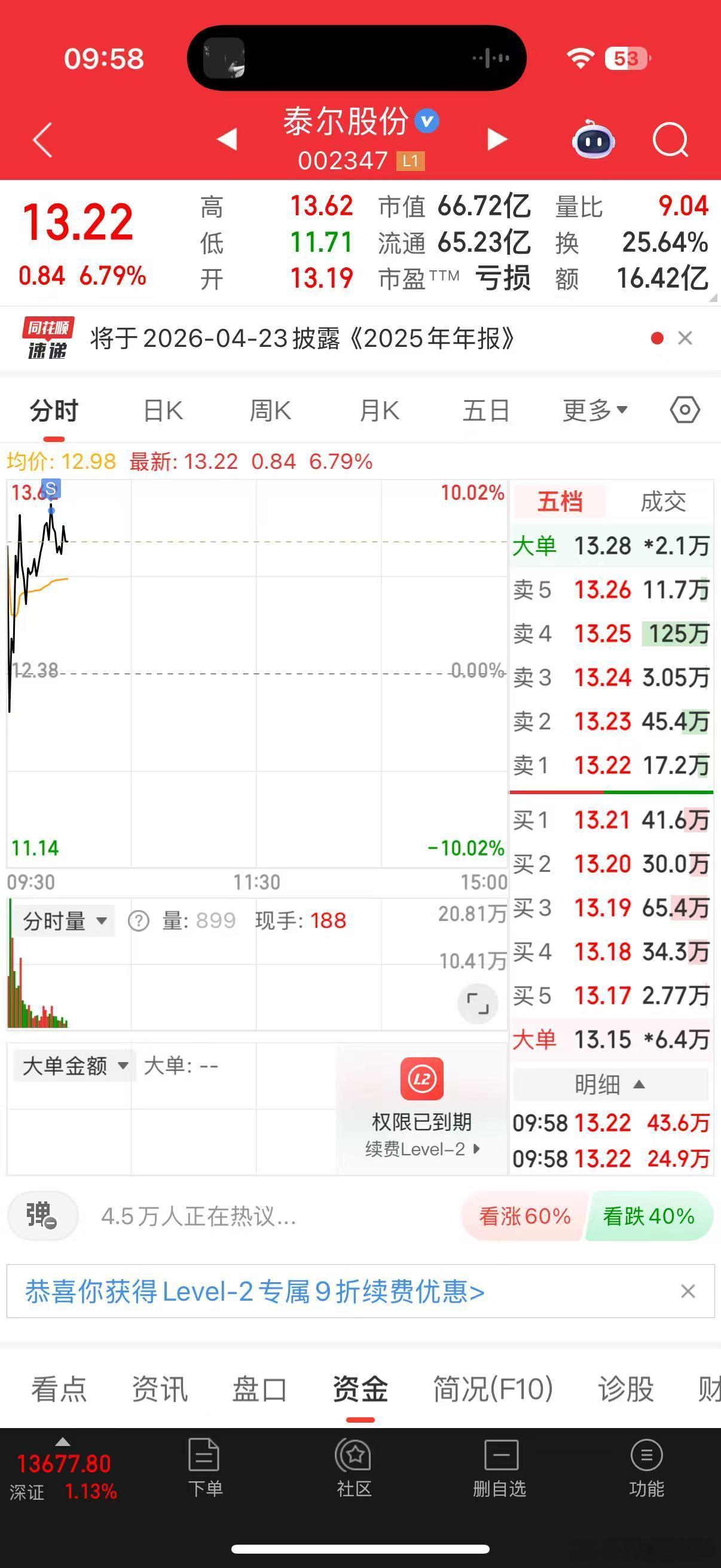 五板断层,$泰尔股份 sz002347$ 答题交卷了,26个点稳稳落袋