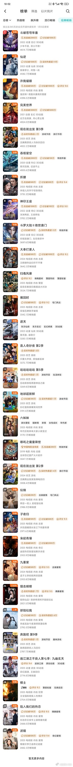 骄阳似我年榜相较于前一天涨了82.7!腾讯拉新年榜到25名了,🎉🎉!热播期有望冲到前15。