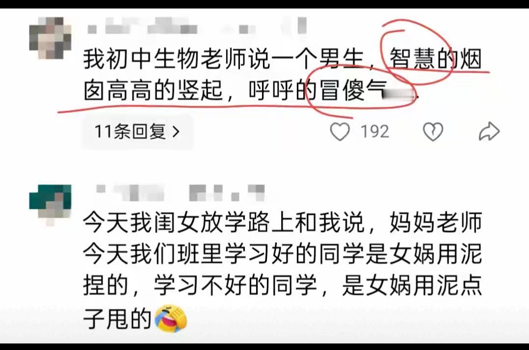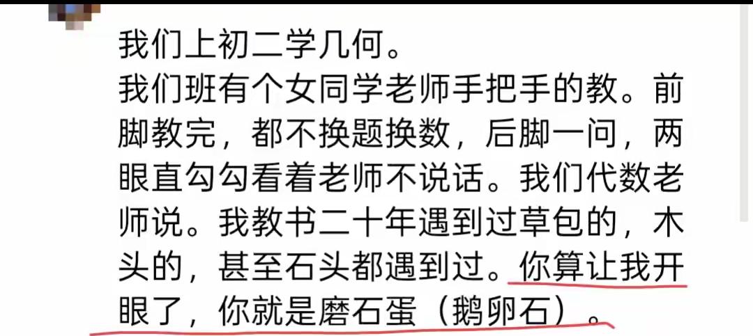笑不活了!老师的“不带脏字吐槽”,才是藏着大智慧的教育艺术! 课本知识早忘到九霄云外,可老师那些金句却刻进DNA:“眼神都劈叉了”“脑子水倒倒再答题”,当年笑到拍桌,如今才懂深意。对着几十号注意力涣散的熊孩子,硬批评容易遭逆反,幽默调侃才是高招。 这些“口吐芬芳”从不是真吐槽,而是用玩笑护着孩子自尊,让教训在笑声里记牢。比起冷着脸说教,这种带温度的批评,既释放了老师的压力,又拉近距离。原来最好的教育,是严而有爱,刚中带柔。 你上学时听过最经典的老师金句是什么?来评论区分享一波回忆杀!