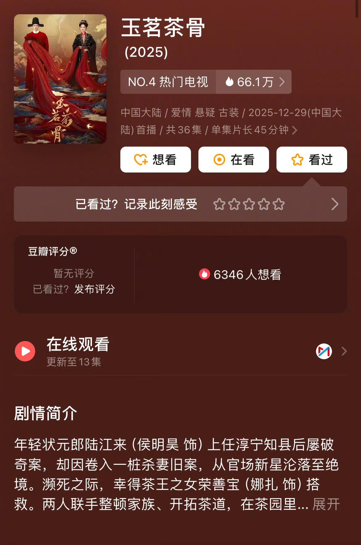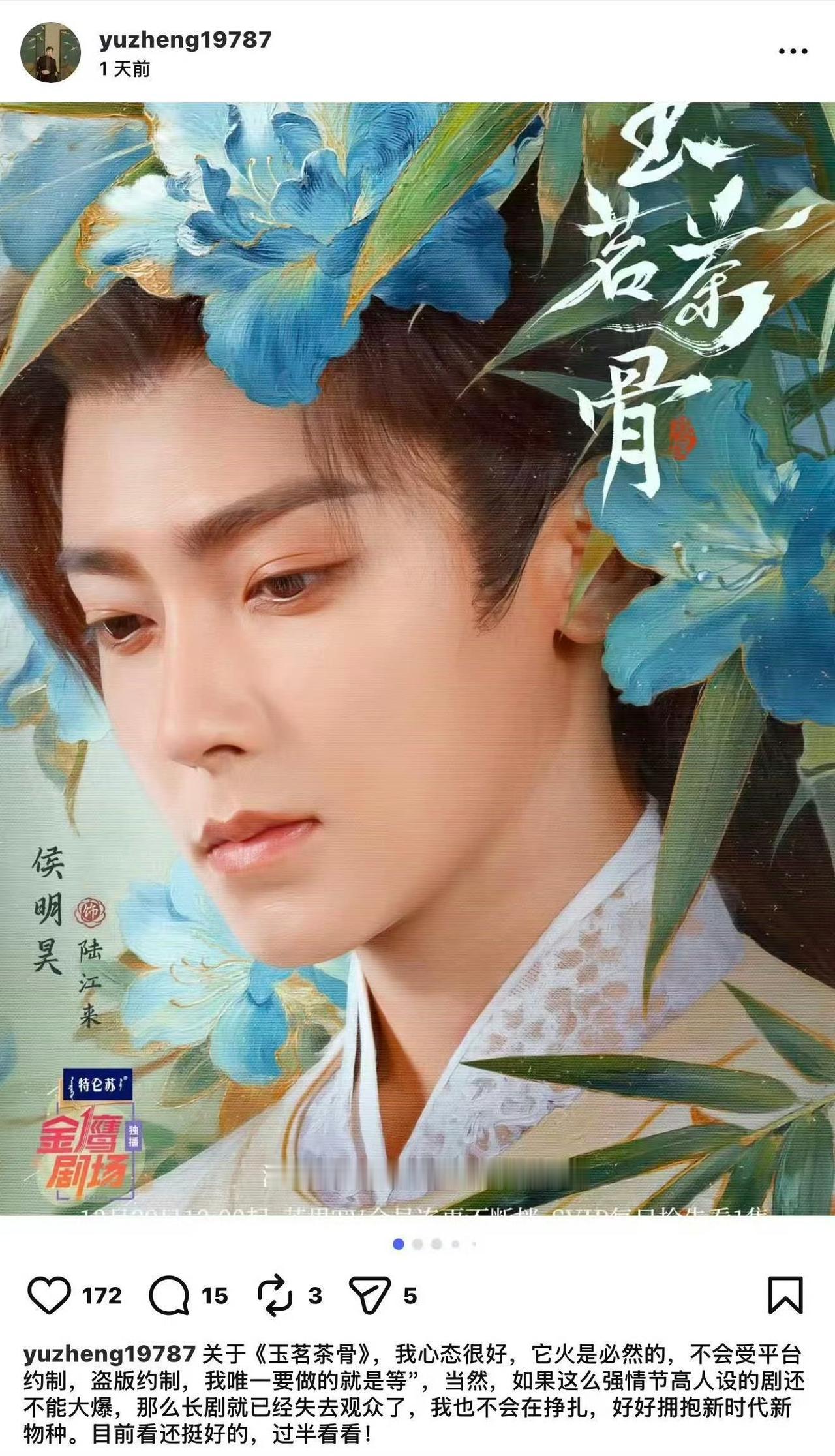 玉茗茶骨挺好看,侯明昊没啥演技,娜扎也不多,还没有男配演的好,剧情不错,男女主够好看,总体还可以