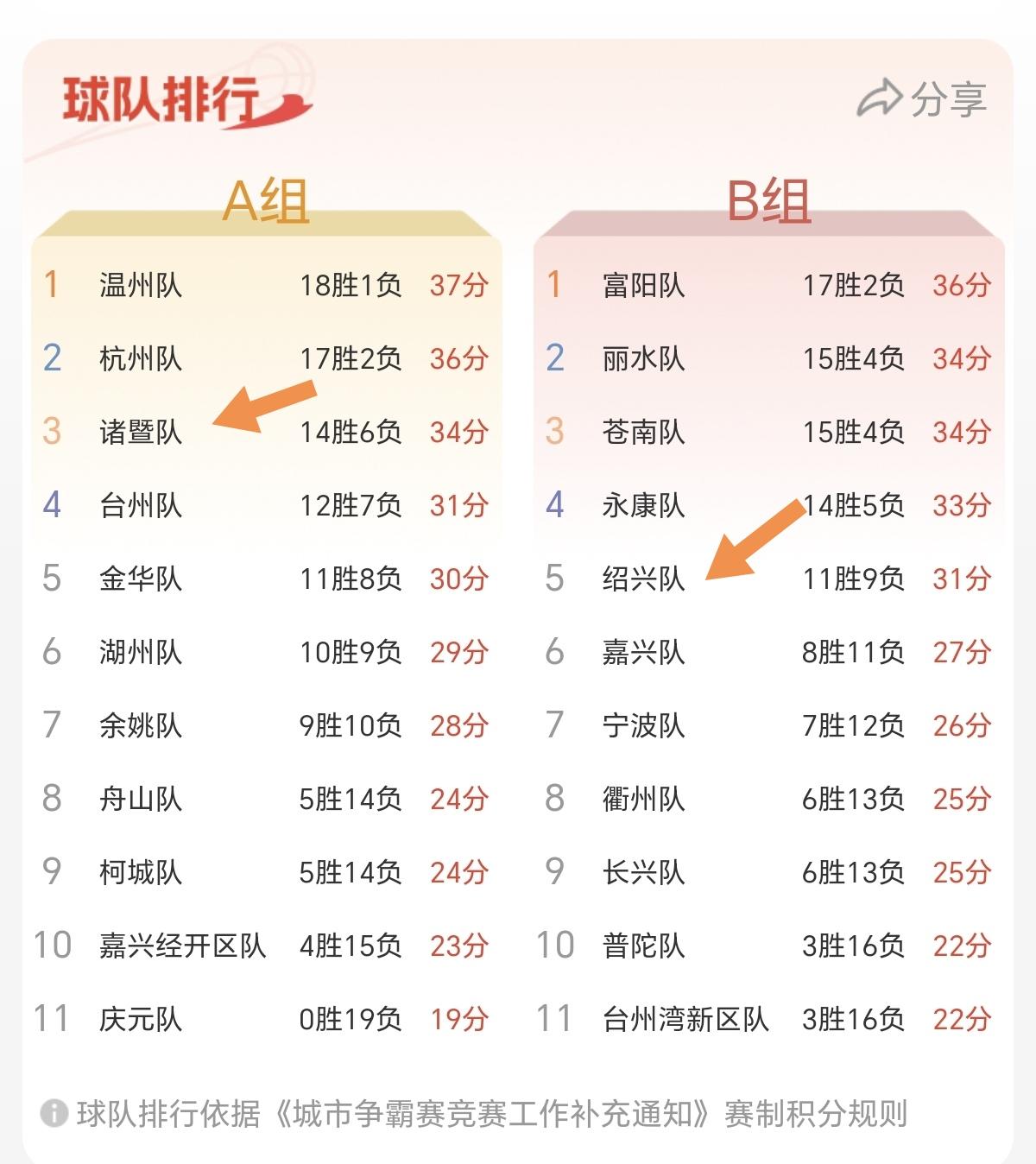 本周二开始的浙BA小组赛,第22轮比赛,是本届小组赛最后一轮赛程。除了绍兴队和诸暨队已经完成20场比赛。其他20支参赛球队,本周均有比赛。 所以本周的比赛也比较热闹,大家可以欣赏自己支持的球队的比赛。这其中,本周最具悬念的赛事,当属台州队vs金华队,以及丽水队vs嘉兴队,苍南队vs长兴队。 这三场比赛结果,关乎着台州队和金华队谁能出线,以及苍南队和丽水队小组赛排名问题。A组的大事是确定小组赛第四名的名额花落谁家。B组的大事是,确定丽水队和苍南队,将会怎么排名,以及下一轮比赛跟A组哪支球队pk。 等到星期天,也就是1月11日两场比赛结束后。本届小组赛也就告一段落了,接下来就将开启8强争霸赛(淘汰赛)。到时精彩还将继续!