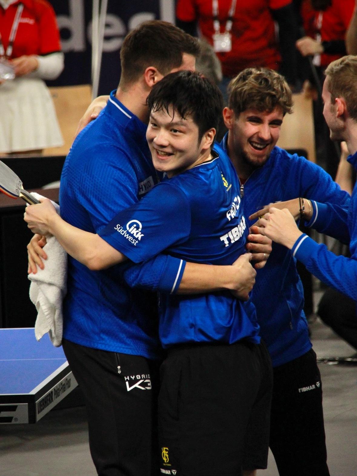 2025-2026德国杯半决赛决赛中,樊振东取得四战全胜,独揽4分帮助萨尔布吕肯