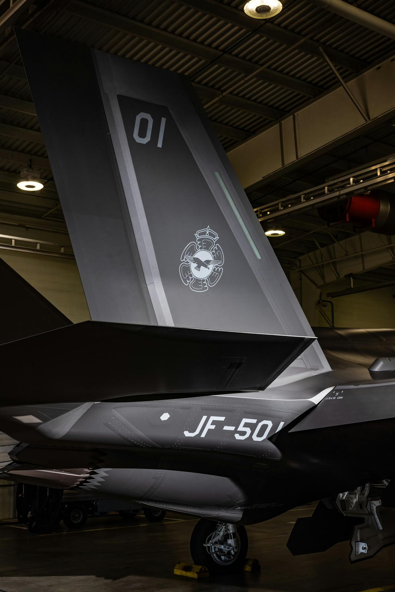 芬兰首架F-35A(编号JF-501)细节拉满: 机身采用低可探测涂层,灰色调国徽与中队徽章暗藏隐身设计,DSI蚌式进气道与V型尾翼优化雷达反射。 左侧机翼上方凸起为25毫米内置机炮特征,机身集成AN/APG-81有源相控阵雷达与分布式孔径系统。 整体线条流畅紧凑,TR-3配置加持下,尽显北欧五代机的精准与隐蔽质感。