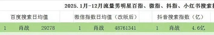 不盘不知道,盘了才发现居然漏了头条这个大平台,和百度一样的级别,2025年头条男明星总搜索量前20,肖战99.6亿断层第1,第二是长红40年的刘德华90.3亿,肖战倍鲨第3名,【百指,微指,抖指和头条】,所有拥有巨大路人盘的地方,肖战的数据无一例外全都【一骑绝尘绝对断层】,从2019年爆红之后百指常年第1,唯一的第2是因为2024年全年未播剧,这才是真正的时代巨星👊🏻👊🏻👊🏻