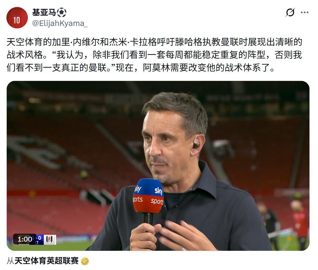 国外球迷在鞭尸加里-内维尔在过去几届主教练任期的评论,当时的他特别希望曼联能有一套稳定的战术打法