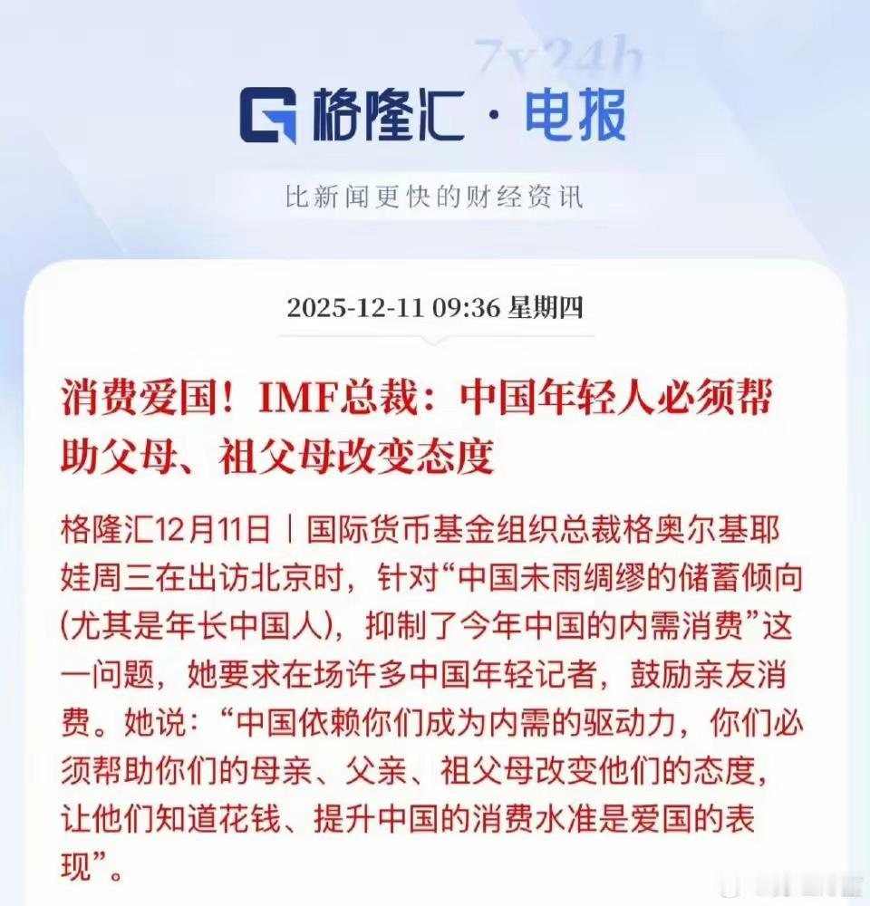 我的今日状态:😁轻松愉快 我这里的天气:☀️晴天 消费我国,从你我做起! 近期小编发现,imf总裁:中国年轻人必须帮助父母、祖父母改变态度 消费爱国,这一理念出来后,相信大家为了爱过国肯定会大举消费。针对此事,大家怎么看?消费爱国 社会消费水平