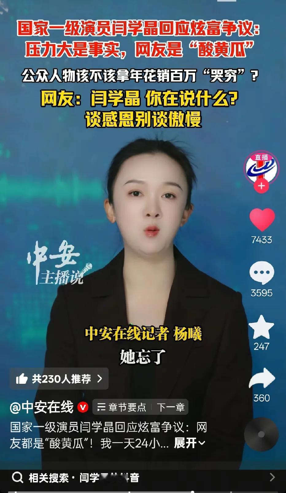 她怎么了?最近热度都还在,这么大的争议存在,应该好好沉淀下自己的心态,而不是出来回应网友是“酸黄瓜”。 这无疑是一种“精英的傲慢”啊,主持人评价的很中肯了。有现在这样的成就,别忘了,当年捧红你的粉丝们。 怎么说呢,这样显得有点傲慢的回应,真的不知道她的心里是怎么想的,难道真把质疑她的网友粉丝们当成了真的“酸黄瓜”?