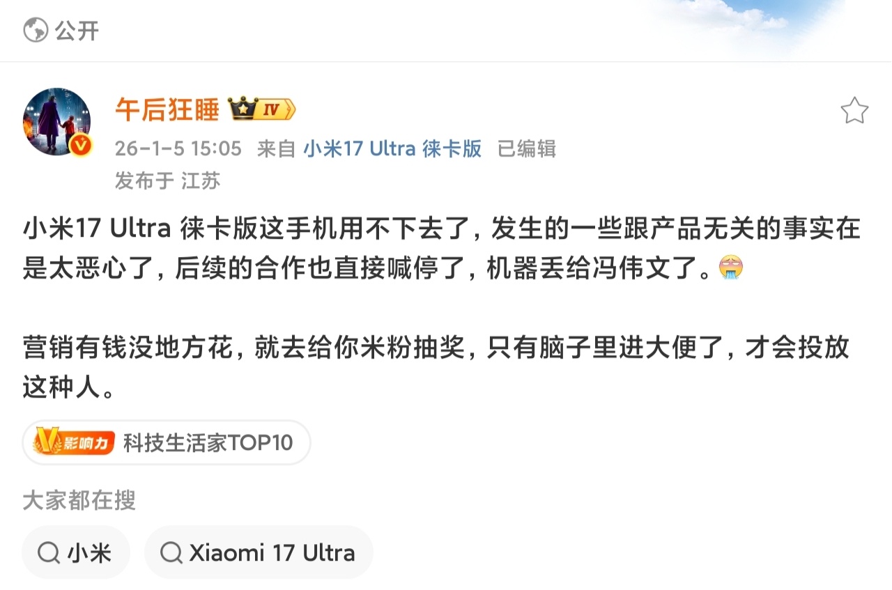 小米立即终止与相关KOL合作这么一来,大熊就很尴尬了,忠诚不绝对