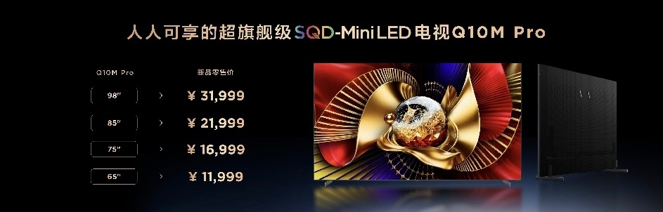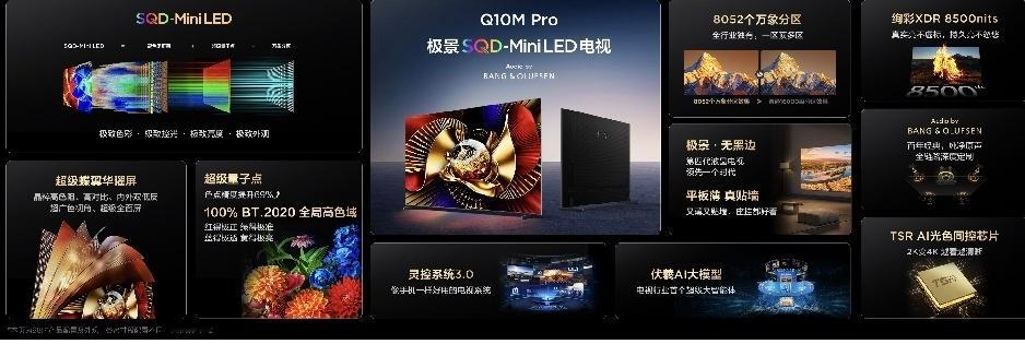 看完TCL发布会,这波直接把Mini LED画质卷到新高度了咱一直说高对比度是Mini LED的灵魂,Q10M Pro的超级蝶翼华曜屏可不是盖的——行业顶流对比度,内外双低反设计直接屏蔽环境光干扰,超广视角让坐哪都能看同款好色彩,再加上无黑边设计,近乎100%全屏显示,沉浸感直接拉满;还有那个万象分区技术,简直是控光界的黑科技“一区顶多区”的质变效果,不同尺寸分区数直接拉满——98吋有8052个分区,65吋都有3528个、关键是它用的SQD-Mini LED,单灯就是一个分区,比同成本的RGB-Mini LED分区数多3倍以上,控光精度直接翻倍,直接做到黑场更沉、白场更纯,明暗层次绝了!除了画质,颜值和体验也没落下!极景无黑边设计,100%全屏沉浸式观看,平板薄机身不管座装还是挂装都好看,隐藏式集线还能让桌面整整齐齐,B&O音响+灵控系统3.0,音画和操作体验直接看齐旗舰~这款价格和开售时间也给大家扒清楚了:Q10M Pro四个尺寸,65吋11999元、75吋16999元、85吋21999元、98吋31999元,1月5日预售,15日正式开卖!等等还没完,TCL这次直接技术普惠,Q10M同步上线~同样是SQD-Mini LED+超级蝶翼华曜屏,100% BT.2020全局高色域+超级量子点技术,配置直接拉满,价格却香到爆:98吋24999元、85吋15999元、75吋12999元、65吋9999元!这意味着以后咱普通人也能轻松体验到“画质铁三角”的全维能力了,这波真的是既巅峰又普及!