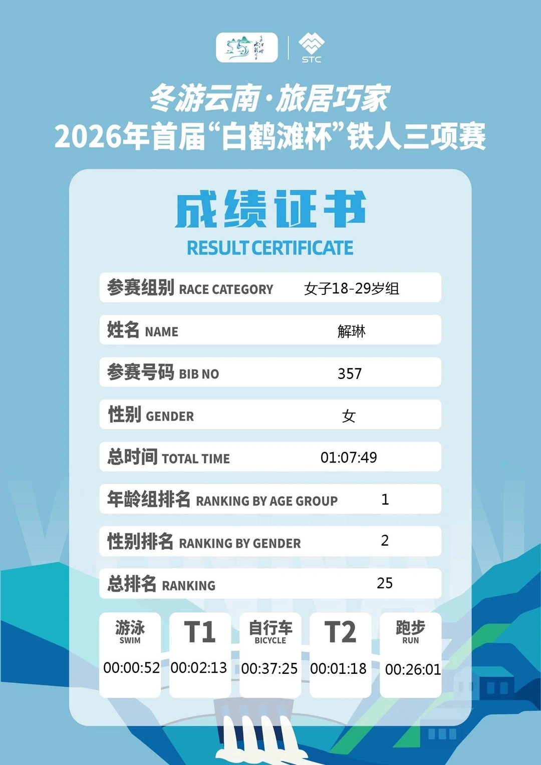 其实是年龄组冠军啦 全场亚军
