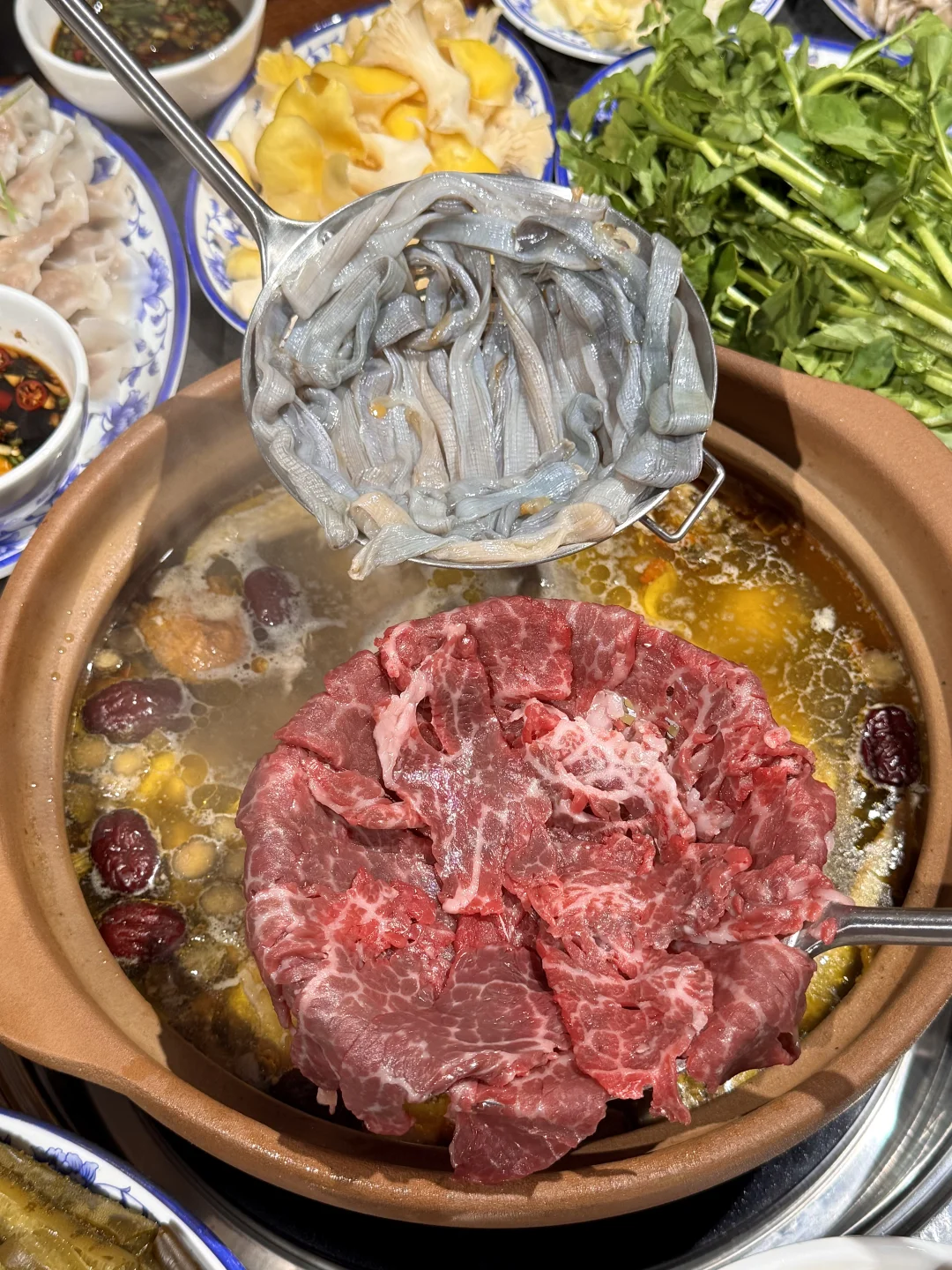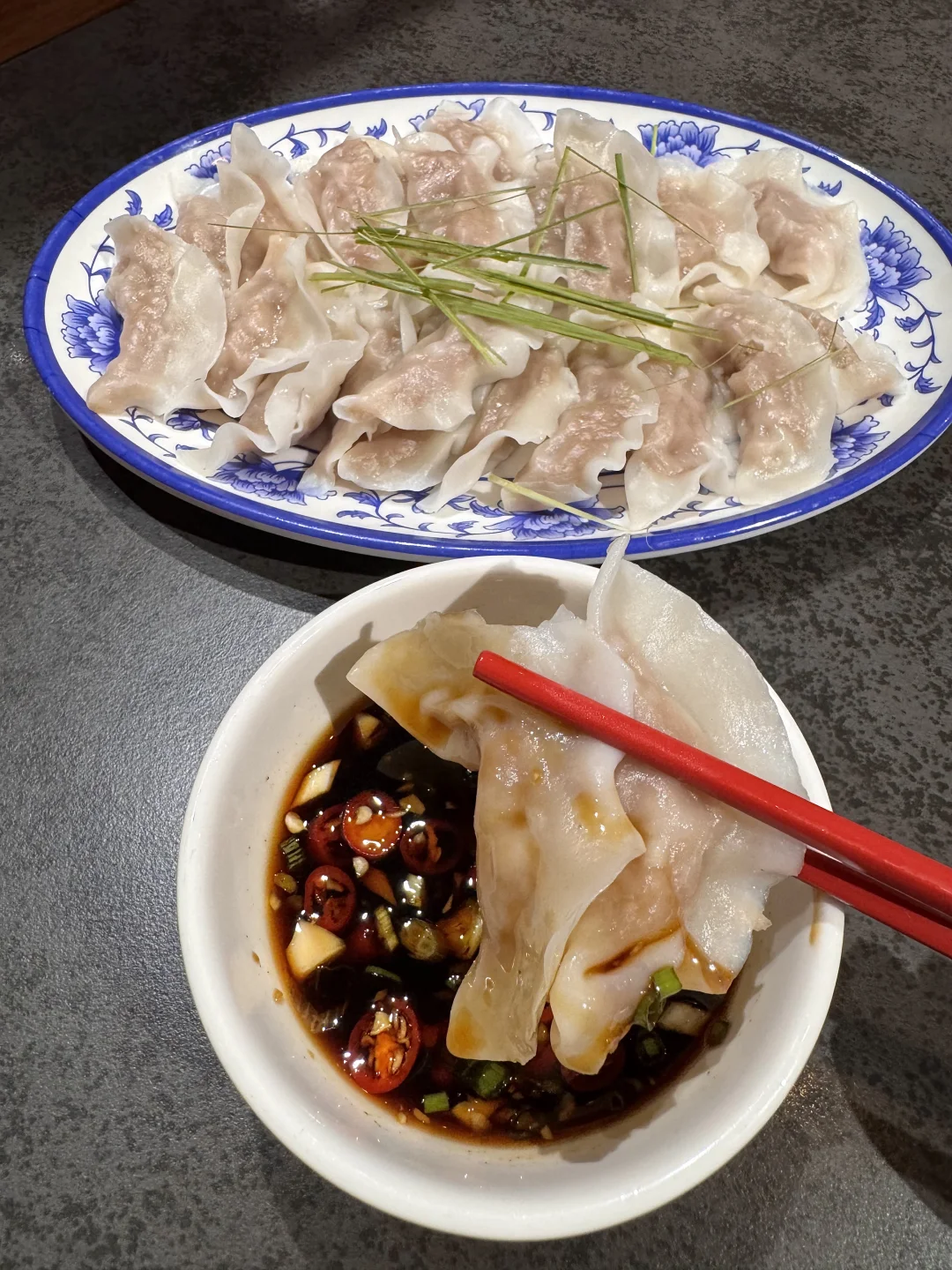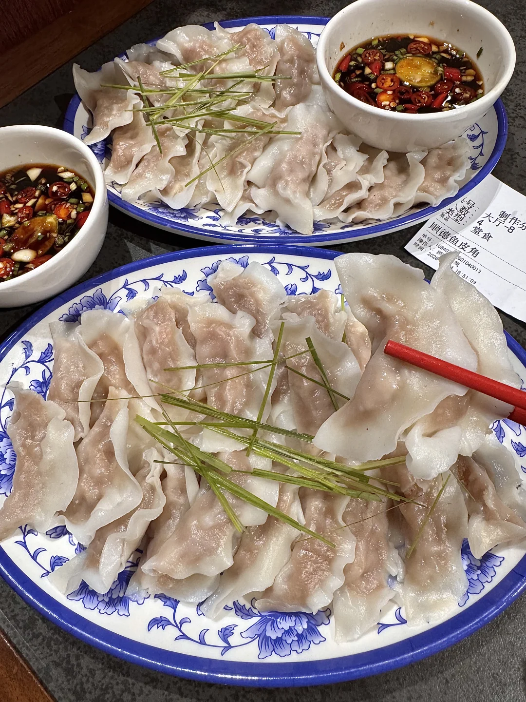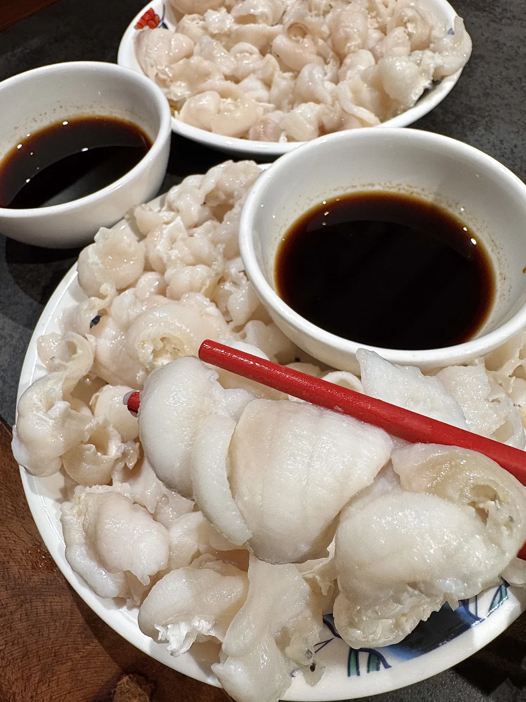 顺德鱼皮饺!!q嫩弹牙不管是空口还是蘸料都好好吃😭配上柠檬丝好特别!和朋友点了三碟全吃完了!!他家鸡煲下啥都嘎嘎鲜~海笋、灰树花、沙虫…生意这么好果然是有原因的🙏