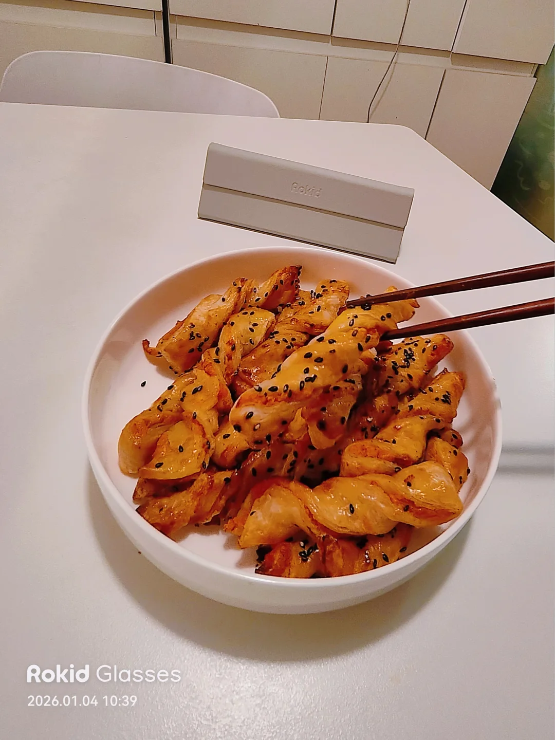 出炉的扭扭棒咬一口咔嚓掉渣,红薯泥糯叽叽的还带着自然甜香,幸福感直接拉满!有了乐奇 AI 眼镜,厨房小白也能大胆解锁新吃法,科技感和烟火气居然这么搭~