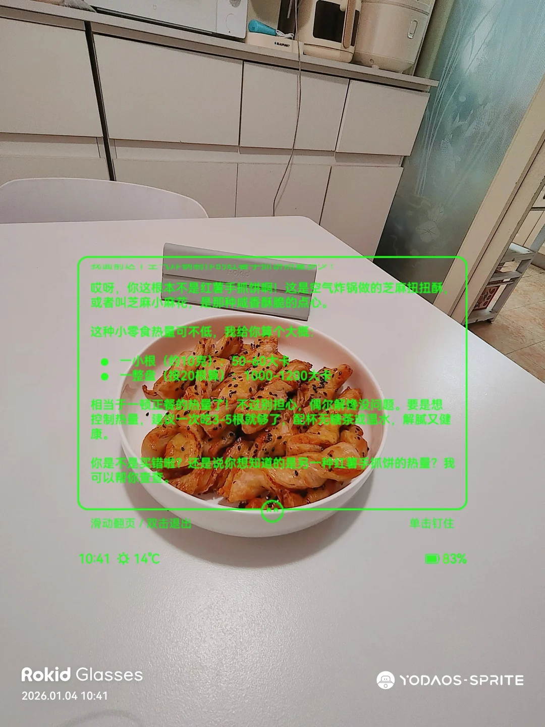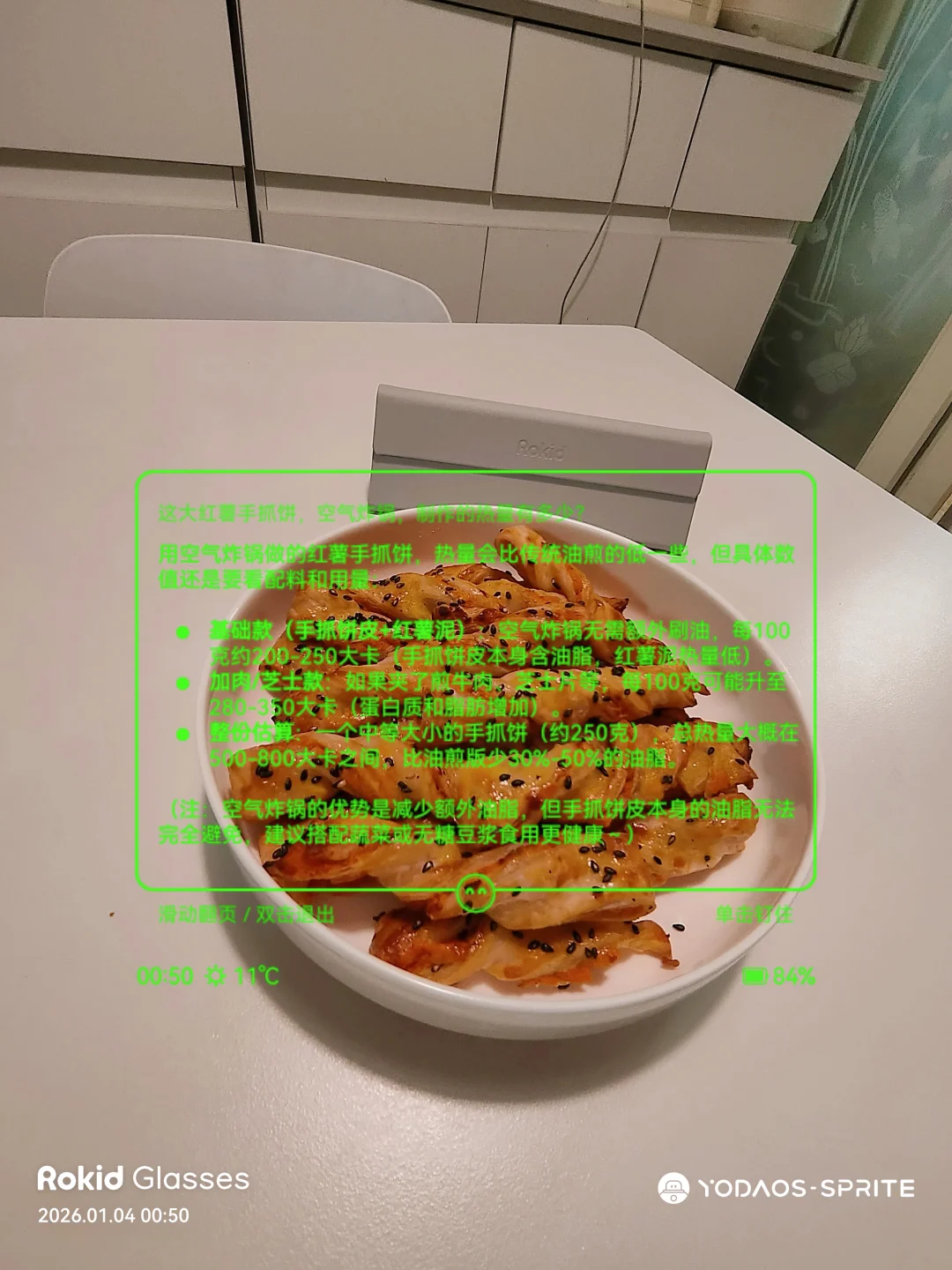本来做的时候还在纠结烤多久才不会夹生,突然想起戴的乐奇 AI 眼镜,直接对着食材说 “红薯扭扭棒空气炸锅温度时间”,镜片上立马弹出精准教程,连薯泥甜度比例都给了建议,再也不用低头翻手机沾一手油糊糊~还能直接问他,这份菜的热量,真的不要太棒再也不用一边做东西一边找手机看食谱了~还能第一视角拍照录视频记录。