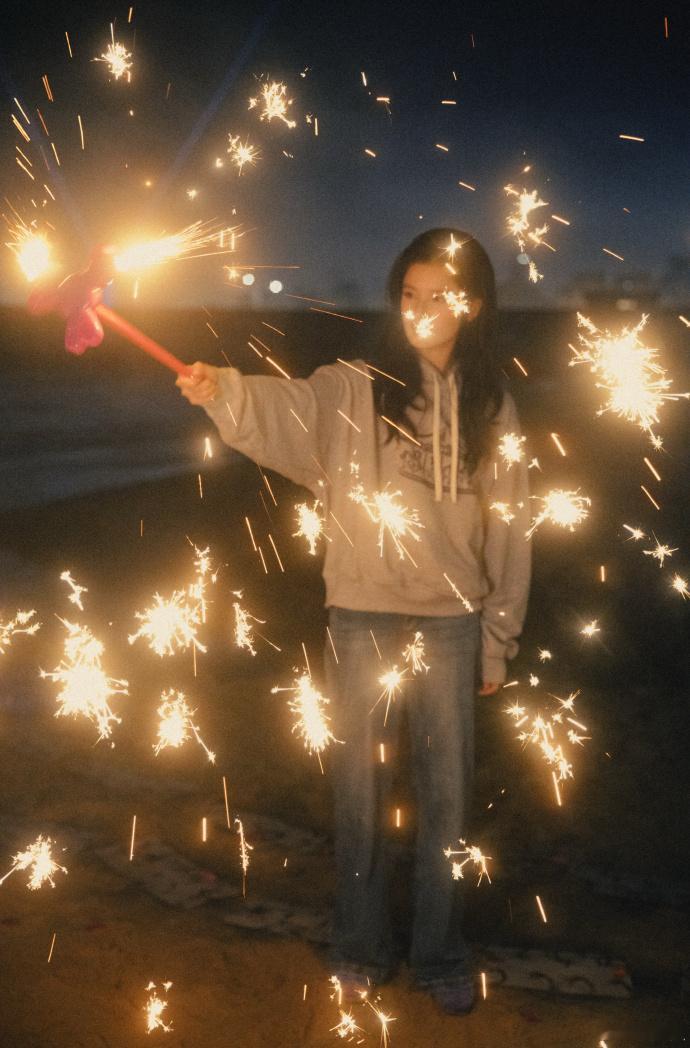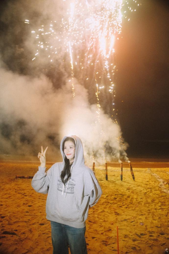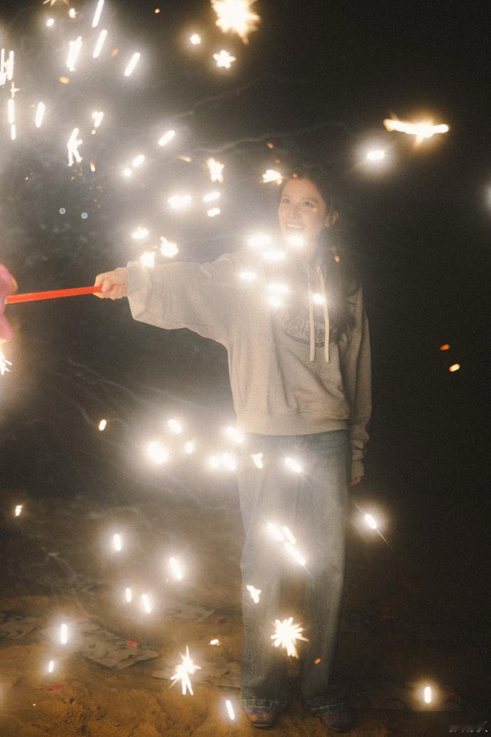 张婧仪放烟花这组图太美好了。。小张和烟花都很漂亮!希望美好会发生在每个人身上!