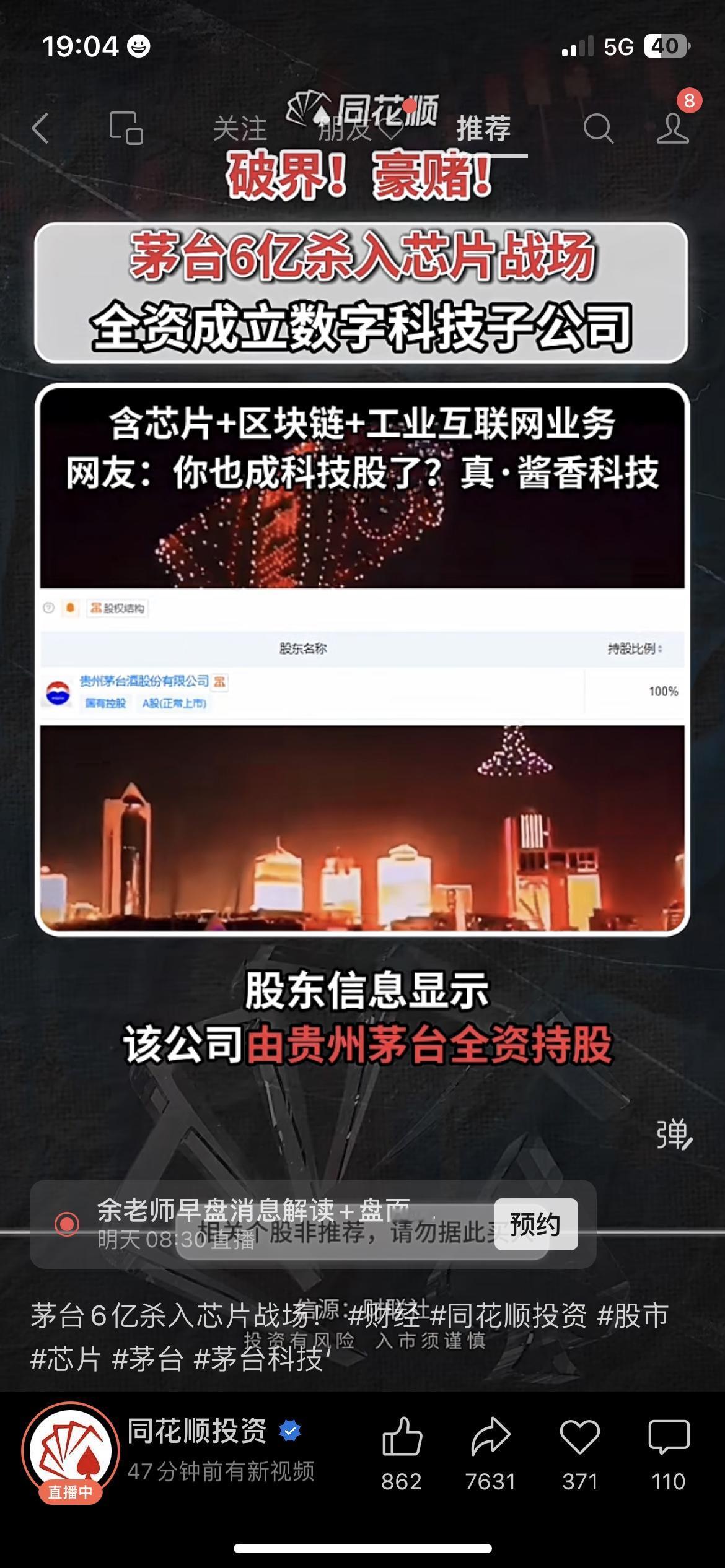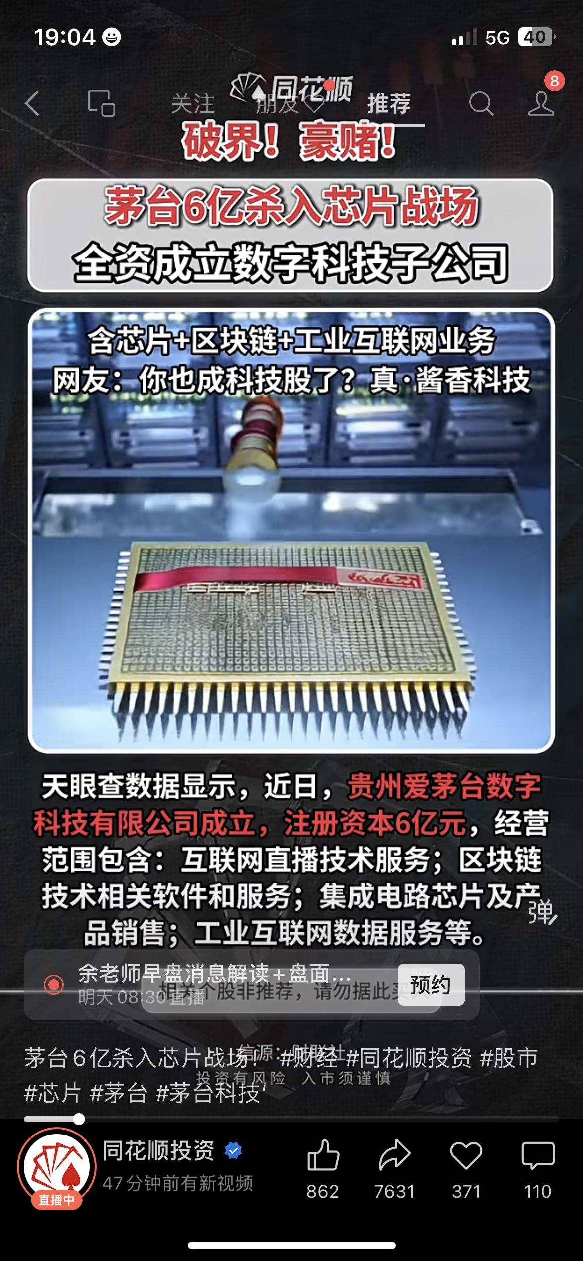 过年囤茅台的注意了!你喝的酱香酒,现在要跨界造芯片了😱 贵州茅台刚砸6亿成立数字科技公司,全资控股,业务直接覆盖芯片销售、区块链、工业互联网,网友笑称“酱香科技实锤”。 昨天去超市买飞天茅台,导购大姐还跟我说“茅台只做酒,稳得很”,今天就刷到这新闻,连超市大爷都凑过来问:“那以后买茅台股票,算不算买科技股?” 茅台放着白酒主业不深耕,跨界高科技,你觉得是真转型还是蹭热点?你会因为这事改变对茅台的投资看法吗? 茅台科技 财经热点贵州茅台