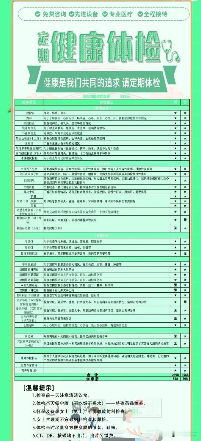 昨天二姐回来了,今天上午我们一起去体检中心体检了。我头一次来,有点慌乱。这次是套餐,我选择的是398的,姐姐做的是598的。 大约检查了有两个多小时,都是常规检查,三天后会给结果。 没啥大的问题,自己清楚一下也好!积极治疗,珍爱生命!这次血压挺好,我偶尔会有胸闷。乳腺不太好!所以千万不要生气,等明白的时候病已经做成了。还查了眼睛,做了心电图,测了骨密度。妇科检查很痛苦,你懂的! 老公不太赞同,他是认识问题。我不和他争论。