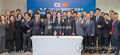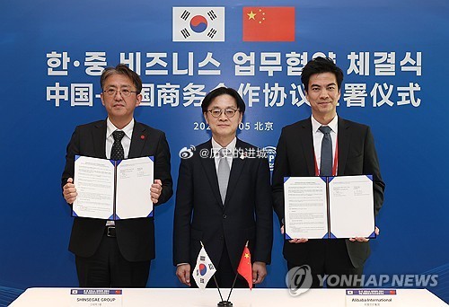 韩国四大财团掌门人在京集体亮相韩国产业通商部5日表示,韩中两国当天以总统李在明访华为契机在北京举行商务论坛。两国企业借此共签署9项合作谅解备忘录(MOU),商定在消费品、文创内容、供应链等领域进一步加强合作。两国企业签署的谅解备忘录涉及消费品(4项)、文创内容(3项)和供应链(2项)领域。消费品领域,韩国新世界集团和中国阿里巴巴国际站商定通过阿里巴巴国际站旗下平台销售新世界面向中国市场推出的产品;三珍食品公司和三进爱陌客有限公司商定加强在华业务合作;农业科技企业FarmStaff和中环易达商定携手推动在中国的智慧农场生产和流通韩国草莓;两国生物制药公司还签署了关于代工生产合作的谅解备忘录。文创领域,两国企业合作MOU内容包括携手推进基于K-POP艺人知识产权(IP)的文创项目;在短视频、综艺、影视作品等文创制作方面,不仅在中国展开版权流通合作,还将推进共同制作和IP共同开发等全面合作;加强在华游戏服务合作及伙伴关系。供应链领域,韩国SWM公司和中国联想商定加强高性能计算平台联合研发合作,争取L4级自动驾驶商用化;两国企业商定在发电和水处理领域建立纳米材料厂,并基于此共同进军第三国市场。