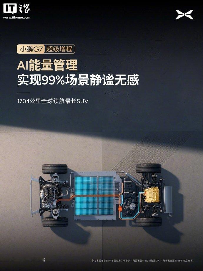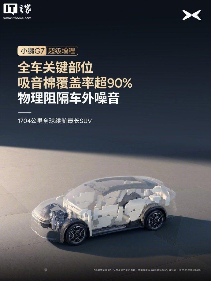 小鹏汽车官方今日继续预热 G7 超级增程 SUV,本次着重介绍了新车的降噪能力。据介绍,小鹏 G7 超级增程全系标配主动降噪技术 ENC+RNC,噪音最高降低 50%。