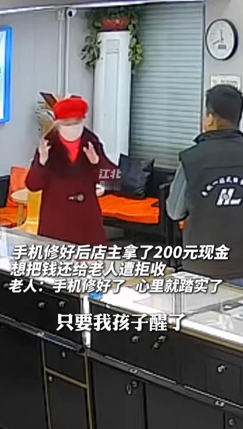爱孙心切!看到老人脱帽鞠躬感谢,网友直呼文化人…… 生活中不缺少美,缺少一双发现美的眼睛。 看到江苏徐州手机店老板半夜10点赶到店铺帮老人修手机; 看到73岁老人半夜打车帮犯癫痫的孙子修手机; 看到老人脱帽两个鞠躬真诚感谢手机店老板,被两个人的真诚感动到了。 不说老人的孙子,因为一个手机掉水里,手机坏了后,刺激到癫痫发作住院。 就看老人孙子住院,深更半夜也要帮孙子将手机修好,就可以看出的爱孙心切! 半夜10点多,老人打车到了一家曾帮她修理过手机的修理店,店铺关门后,蹲在店铺门口求着修理店老板帮修手机。 不仅仅如此,不管花多少钱,就想将孙子的手机能修好。 另外,在修理店老板到了,第一时间脱帽鞠躬感谢;等修理店老板将手机修好后,再次脱帽鞠躬感谢。 看到这一幕,网友被老人的高素质感动。 而修理店老板也是一个实在人,看到老人给了200元修理费,超出了费用,想返回去给老人,但老人不收。 最后修理店老板看到老人的不容易,与老人合影,并将这一幕发布到网上,直呼自己做了一件有意义的事情。 很多人疑问为什么老人这么宠孙子,据修理店老板透露,19岁孙子的父母在孩子很小的时候就离婚了。 随后,这个孩子就被老人一手带大,如今因为手机掉进水桶里面坏了,一时应激导致癫痫发作去住院了。 这名73岁老人就想让孙子尽快好,就如老人所说:孩子醒了,手机修好了,给手机给孩子,孩子高兴,她心里也就踏实了。 不说孙子了,但是这位奶奶真的是当得很到位,既有礼貌,又宠爱孙子。