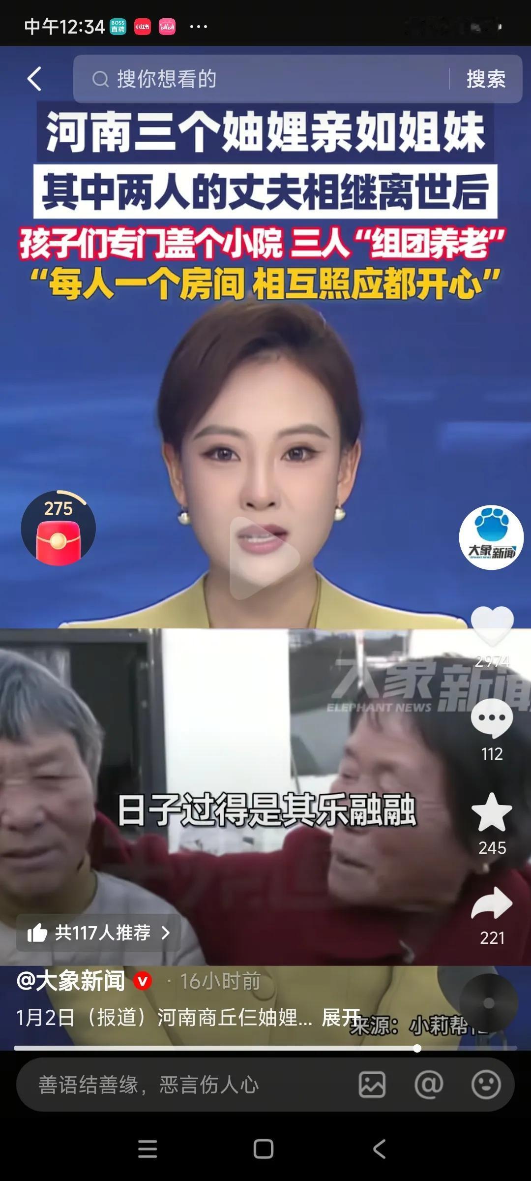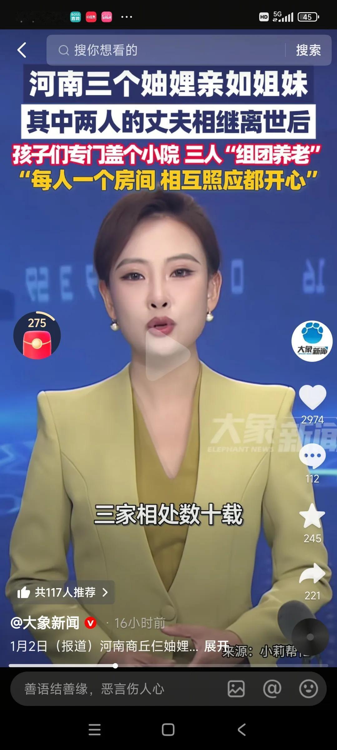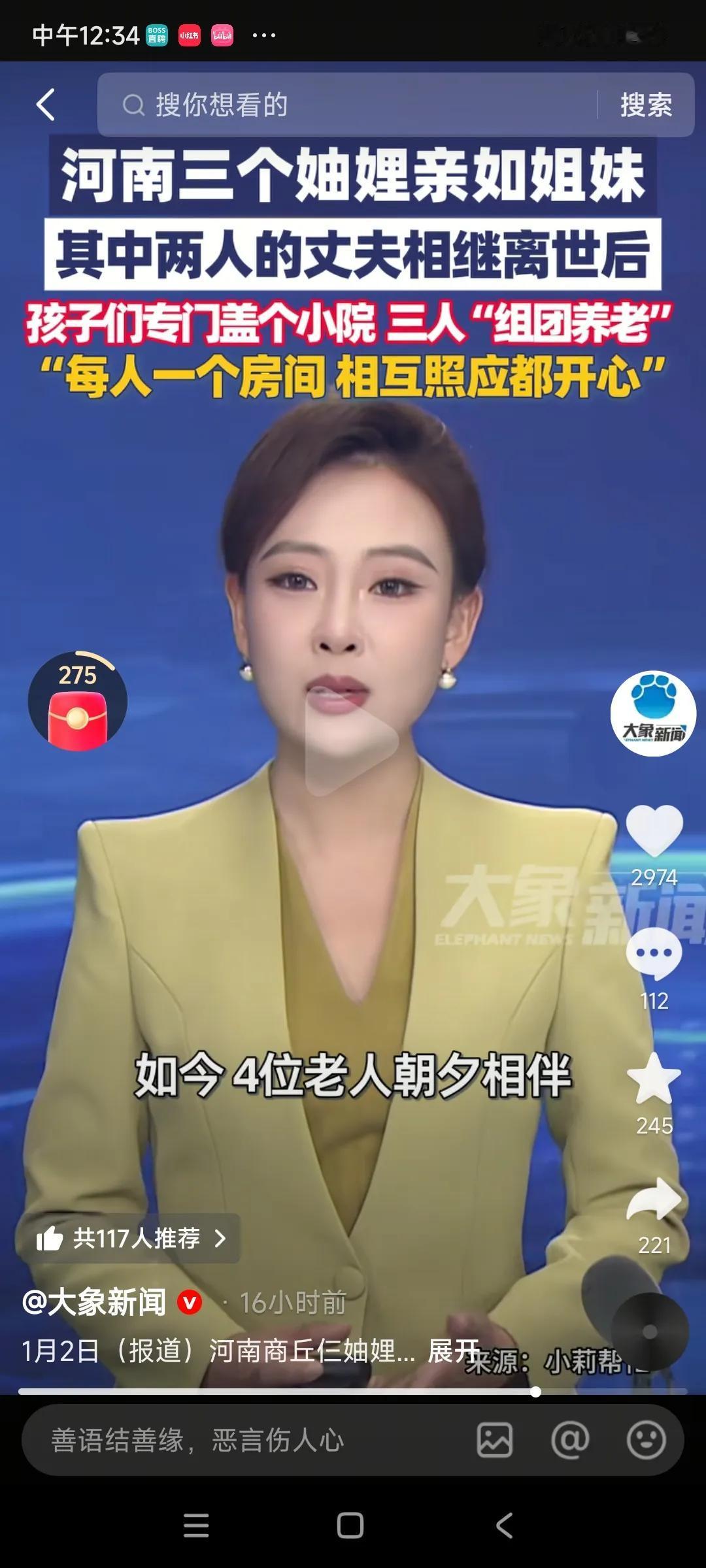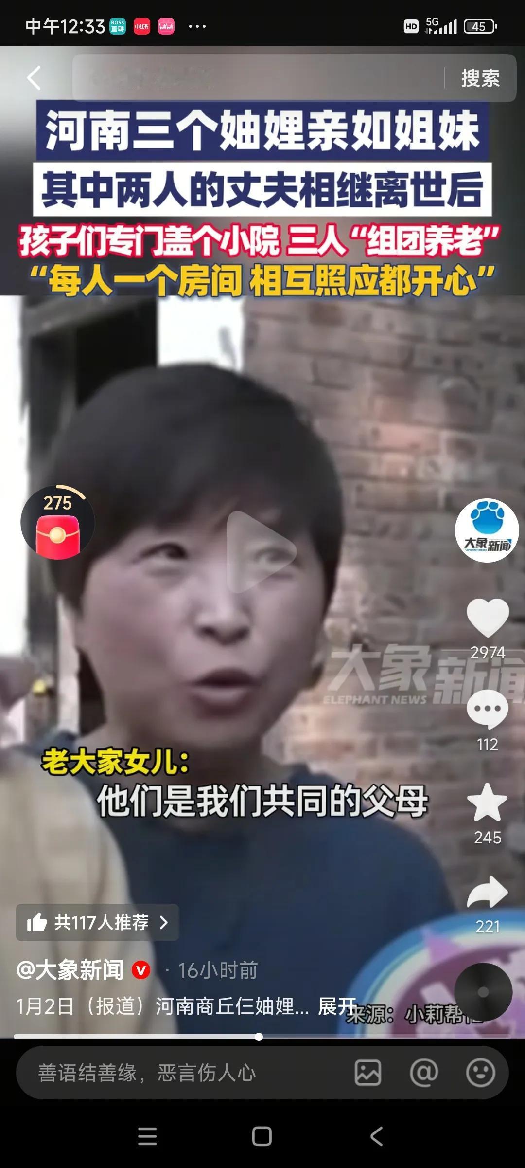河南三位妯娌因抱团养老走红,老大媳妇82岁且老伴健在,老二、老三媳妇分别为75岁、70岁,二人老伴已离世。两位老人因子女不常回家倍感孤单,后辈们为方便照应,商量翻新老三家的房子,让三妯娌同住。三人相处和睦从未红脸,13个后辈时常回家探望聚餐,一家人其乐融融。这种抱团养老的方式收获网友好评,被赞为模范家庭。 网友评论: 亲姐妹抱团养老还容易闹矛盾呢,妯娌能处这么好,真是上辈子修来的缘分。 脾气好、少计较是基础,还得互相体谅,不揪着小事不放,这样才能长久和睦。 兄弟齐心,妯娌才会和睦,看得出来这家人的家风是真的好,根儿正。 老三媳妇最年轻,自然多照料些老大两口子,这种互相搭把手的感觉才叫一家人。 不攀比、不猜忌,有事好好说,妯娌做到这几点,比亲姐妹还亲。 现在很多家庭为鸡毛蒜皮吵翻天,这三妯娌真是给大家做了好榜样。