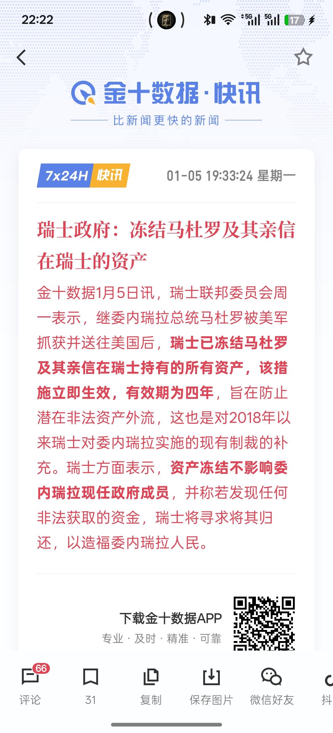 这是强盗逻辑,瑞士政府:冻结马杜罗及其亲信在瑞士的资产,这就是西方所谓的契约精神,一个瑞士政府却沦为了美国附庸工具国家!以前是保持中立!现在却成为了美国的打手!未来有多少资产会逃出瑞士?这样的操作,未来有更多的资金不敢去瑞士了。 明眼人都看得出瑞士政府是配合美国政府做事情!那未来会有更多的金主把资金转出瑞士!