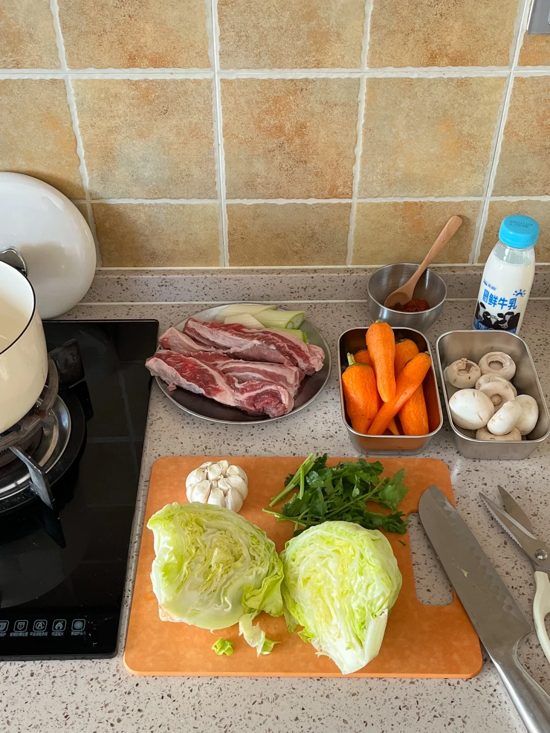 牛肋条焯下水 生抽老抽蚝油盐糖葱姜