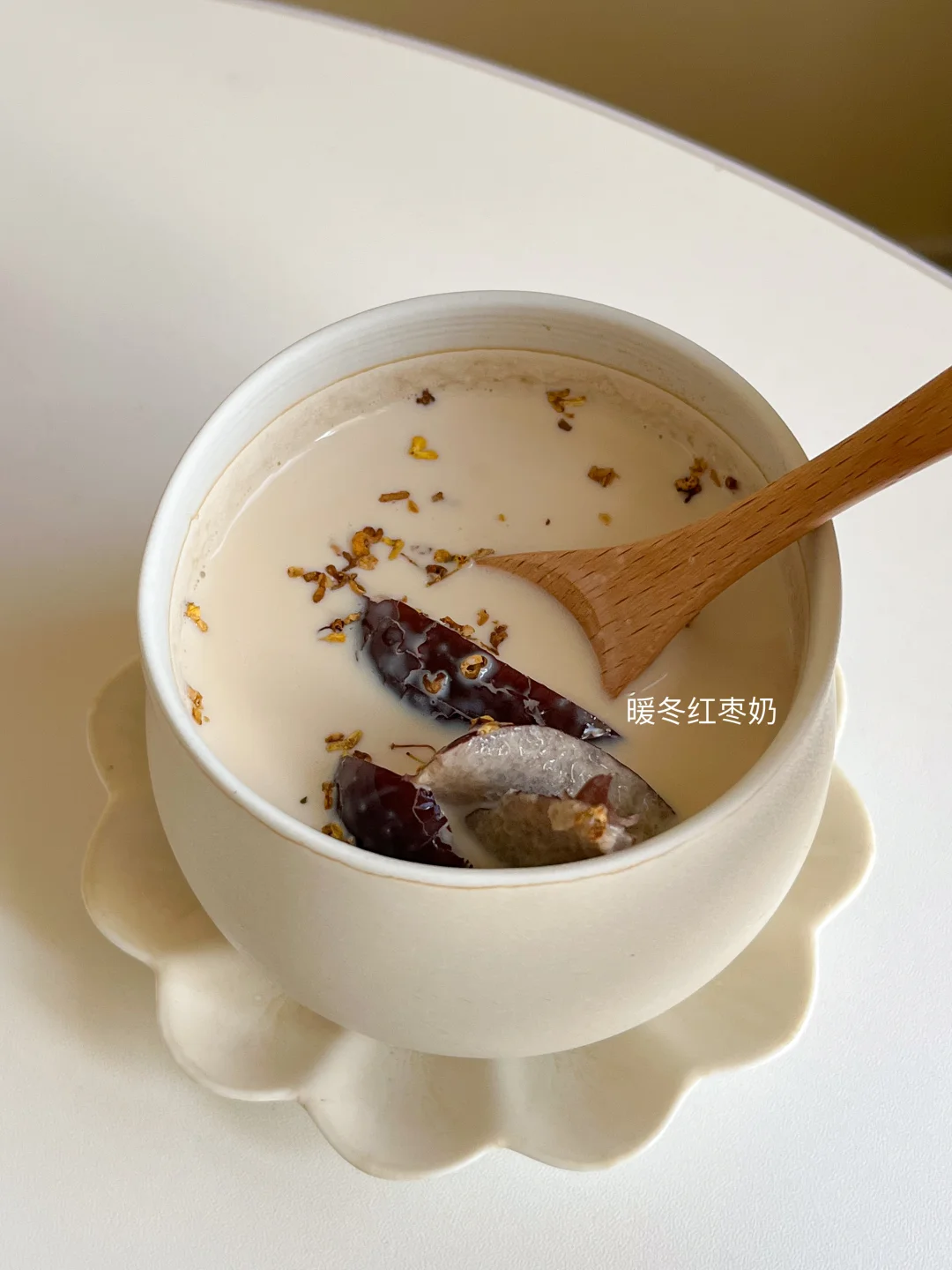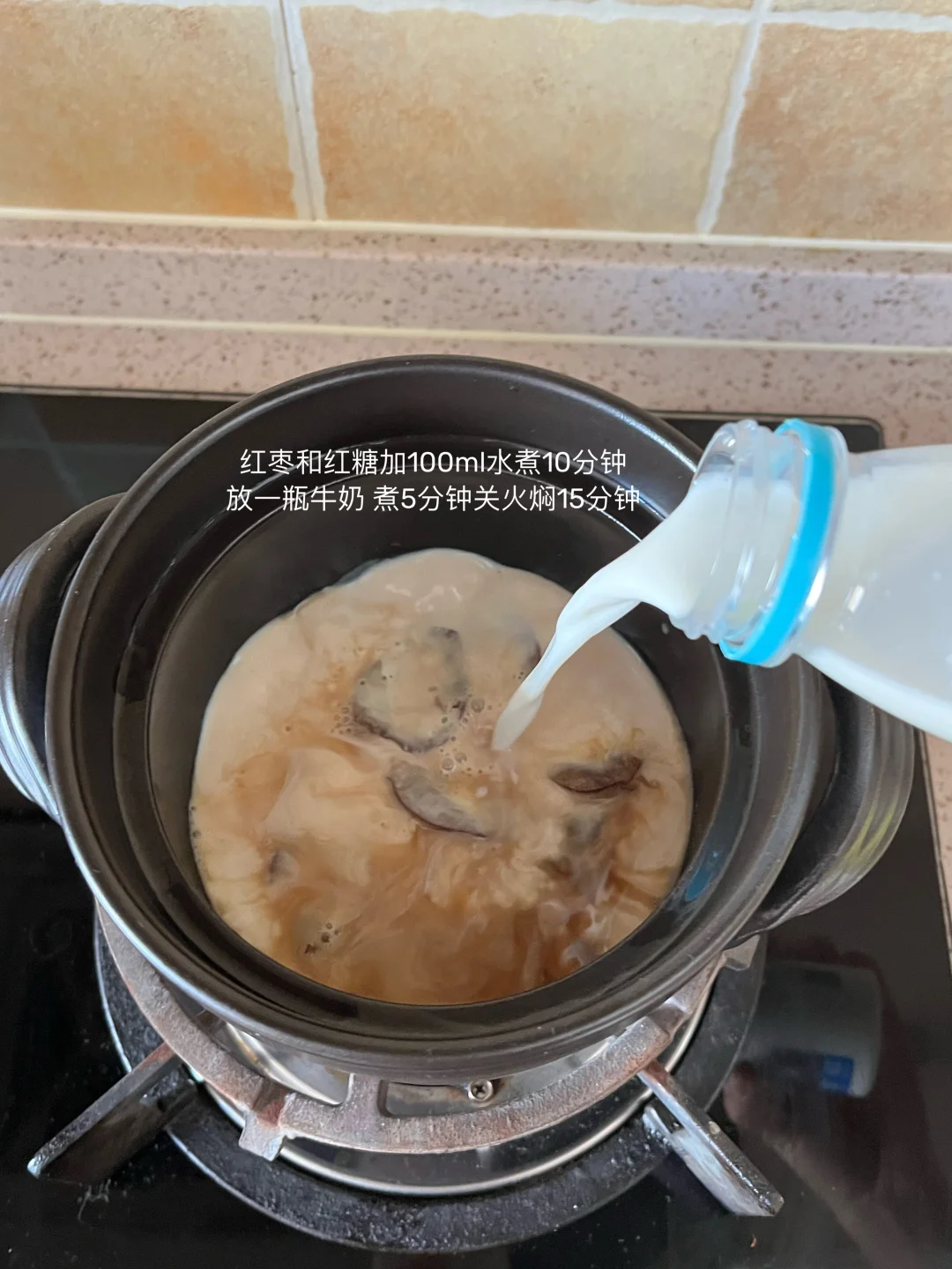 倒入一瓶牛奶煮沸静置15分钟 红枣味更浓