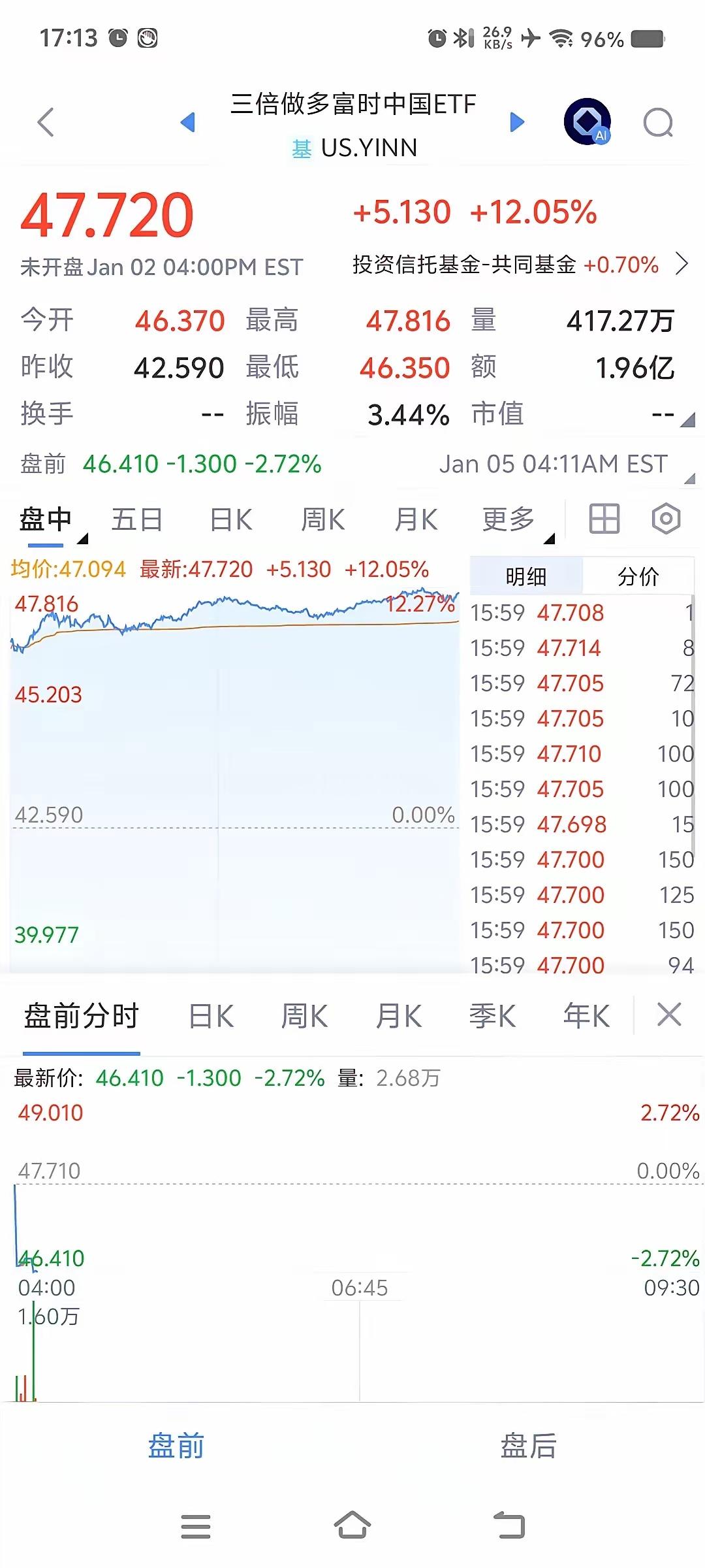 明日大盘预测!放量大涨!主力真是预判了我们的预判!大部分都以为高开低走!今天确实高开放量高走!新年开门红!目前富时中国a50指数期货指数微涨0.03%,三倍做多富时中国ETF盘前下跌2.72%,明日大盘大概率低开了!低开惯性高走是大概率事件!尾盘虽有回落,大盘最终收红!个人观点!仅供参考!