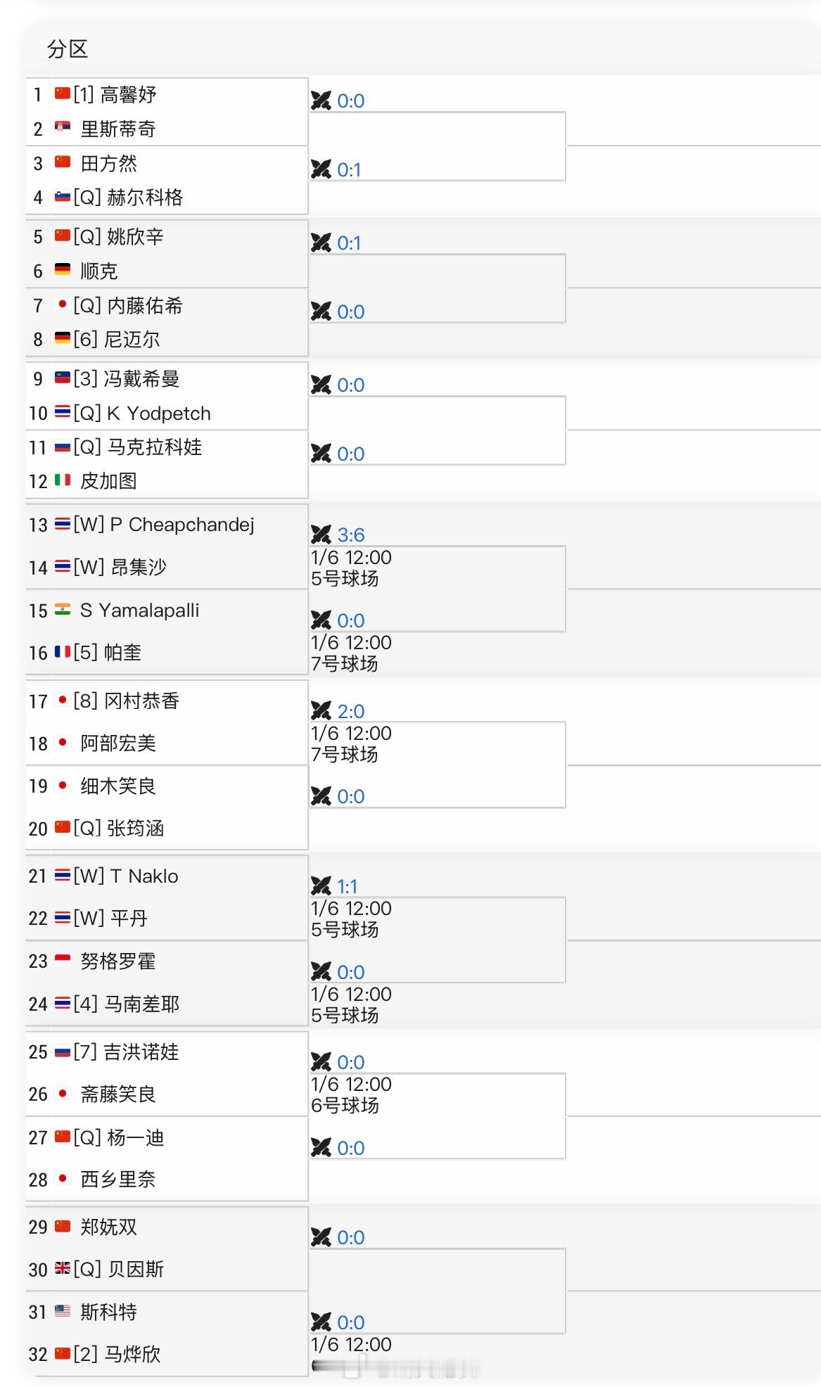 ITF暖武里W75单打签表高馨妤🇨🇳 vs 里斯蒂奇🇷🇸马烨欣🇨🇳 vs 斯科特🇺🇸郑妩双🇨🇳 vs 贝因斯🇬🇧杨一迪🇨🇳 vs 西乡里奈🇯🇵姚欣辛🇨🇳 vs 顺克🇩🇪田方然🇨🇳 vs 赫尔科格🇸🇮张筠涵🇨🇳 vs 细木笑良🇯🇵澳网2026 热身赛