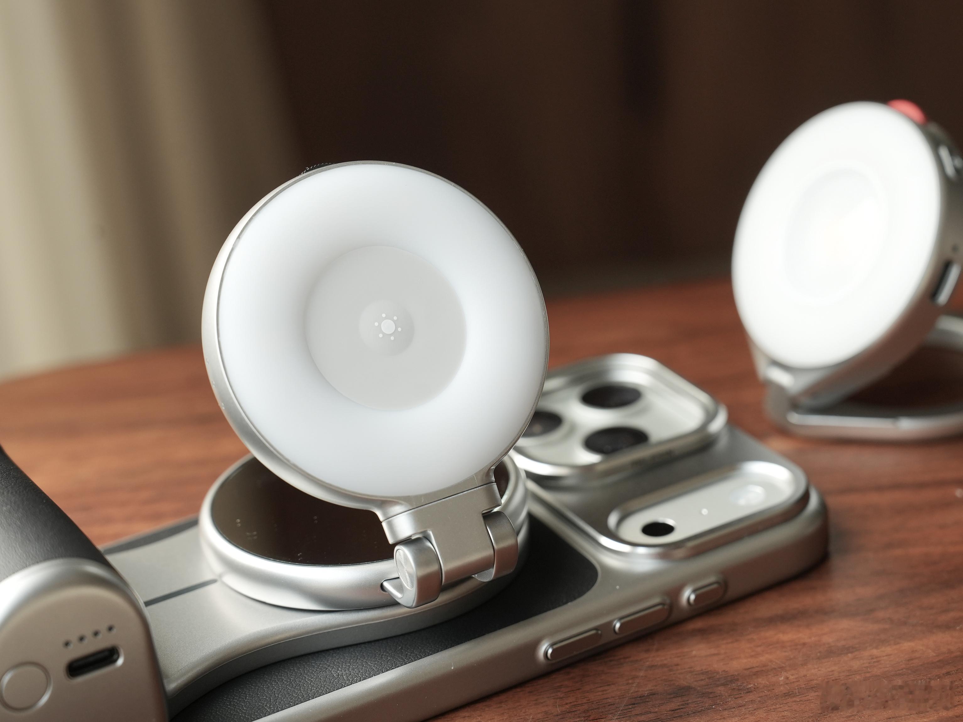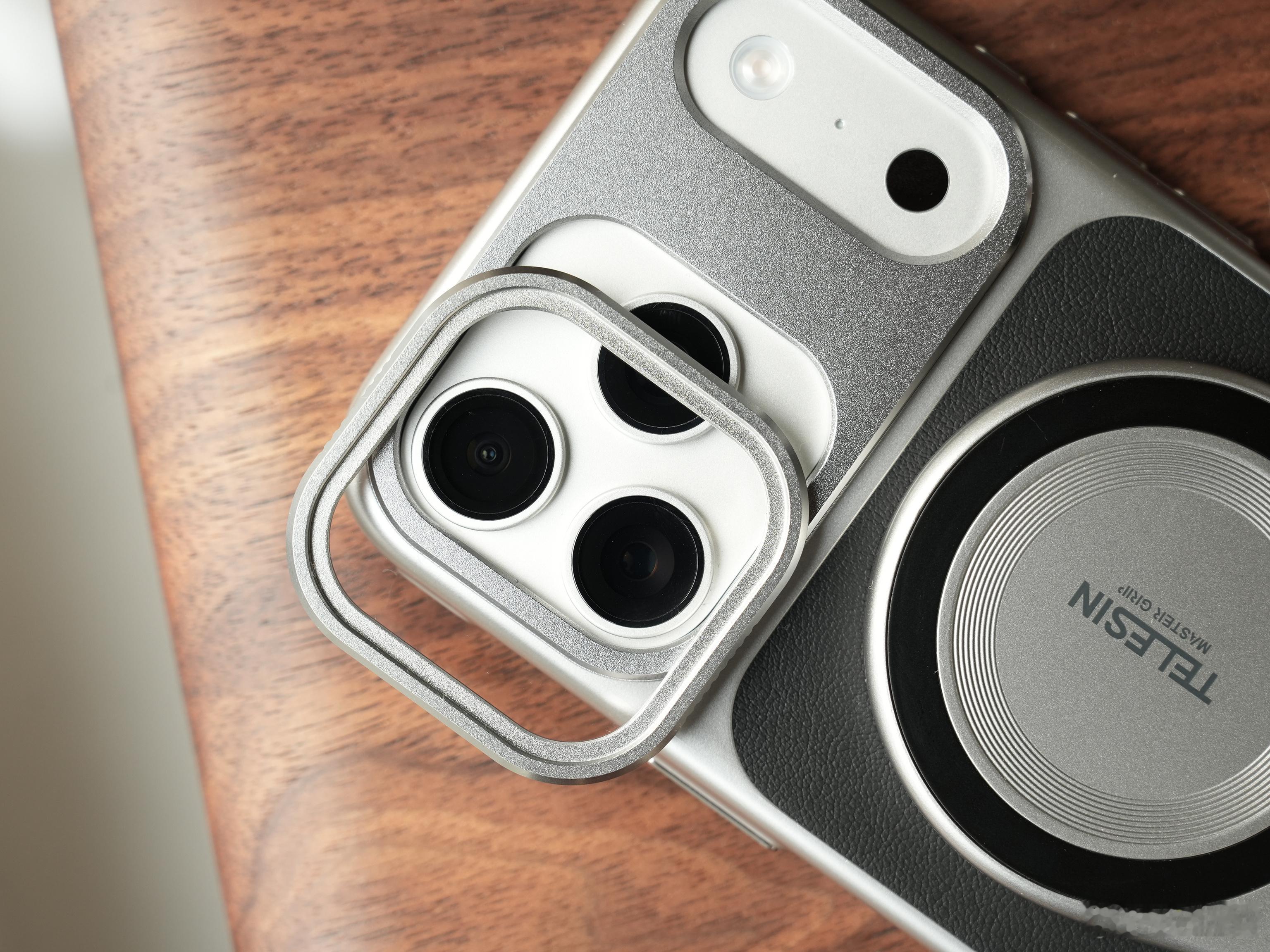 泰讯「大师影像套装」,现已进入Apple零售渠道。所以你们不用担心品质做工了,从图上也可以看出,非常高级精致,可以让你的iPhone拍照更好用手机壳自带7600mm²的石墨烯散热,手柄则是内置3200mAh的电池,支持MagSafe无线充电,都装上之后真有点专业相机的感觉了,机械快门手感挺不错关键是它的价格,真不贵