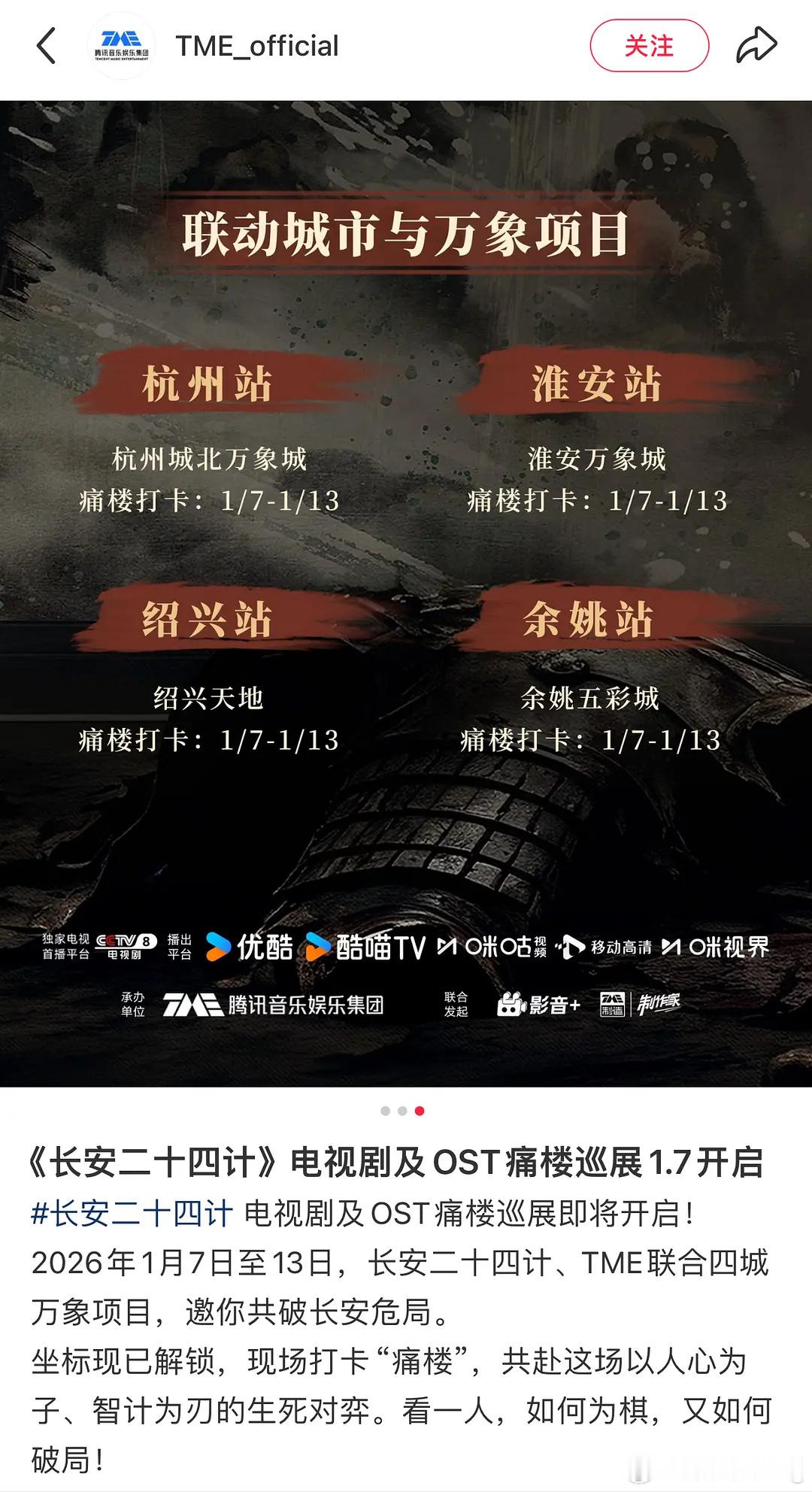 官方承办的成毅长安二十四计电视剧及ost痛楼巡展1.7开启…我们老计太出息了啊…