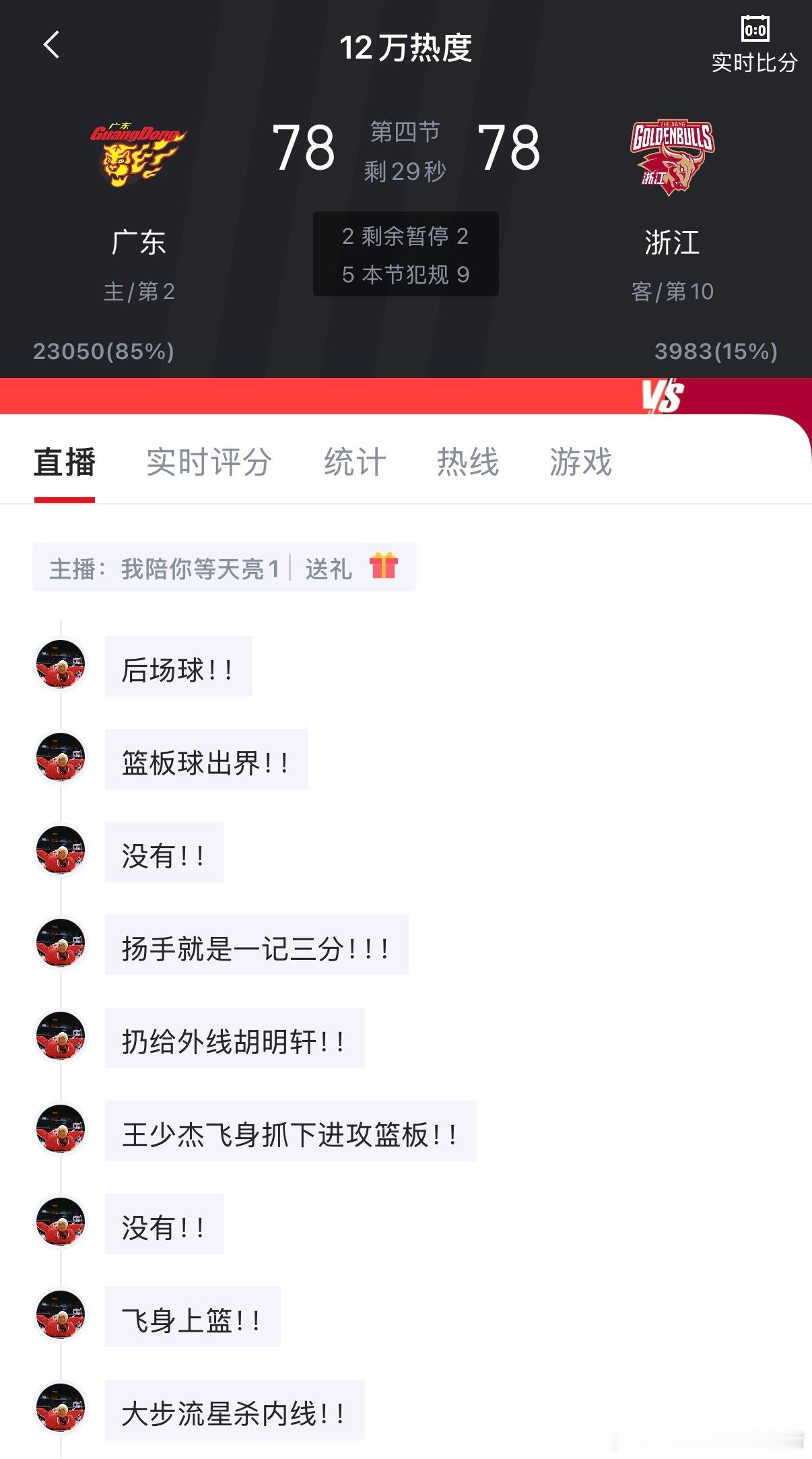 看看别人 最后两分钟!目前广东104:104深圳!