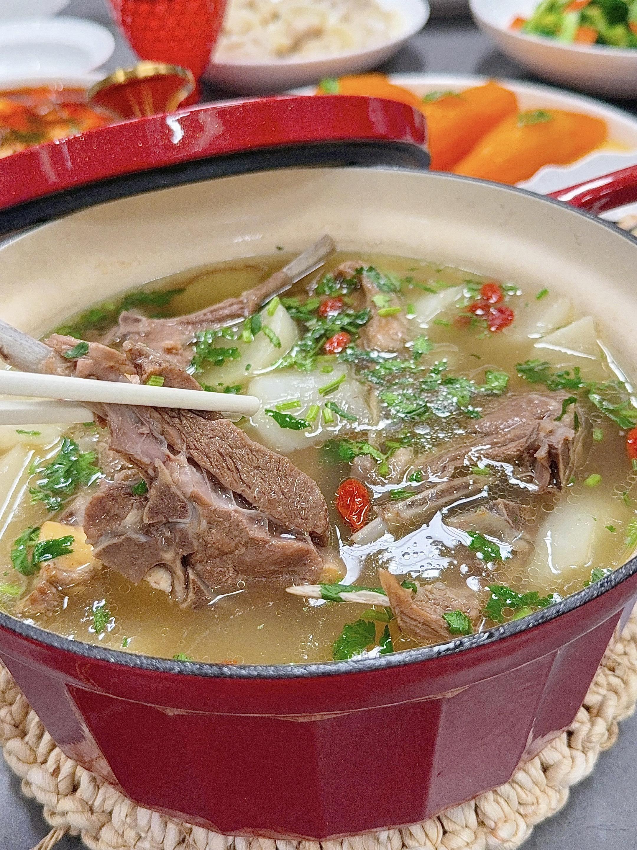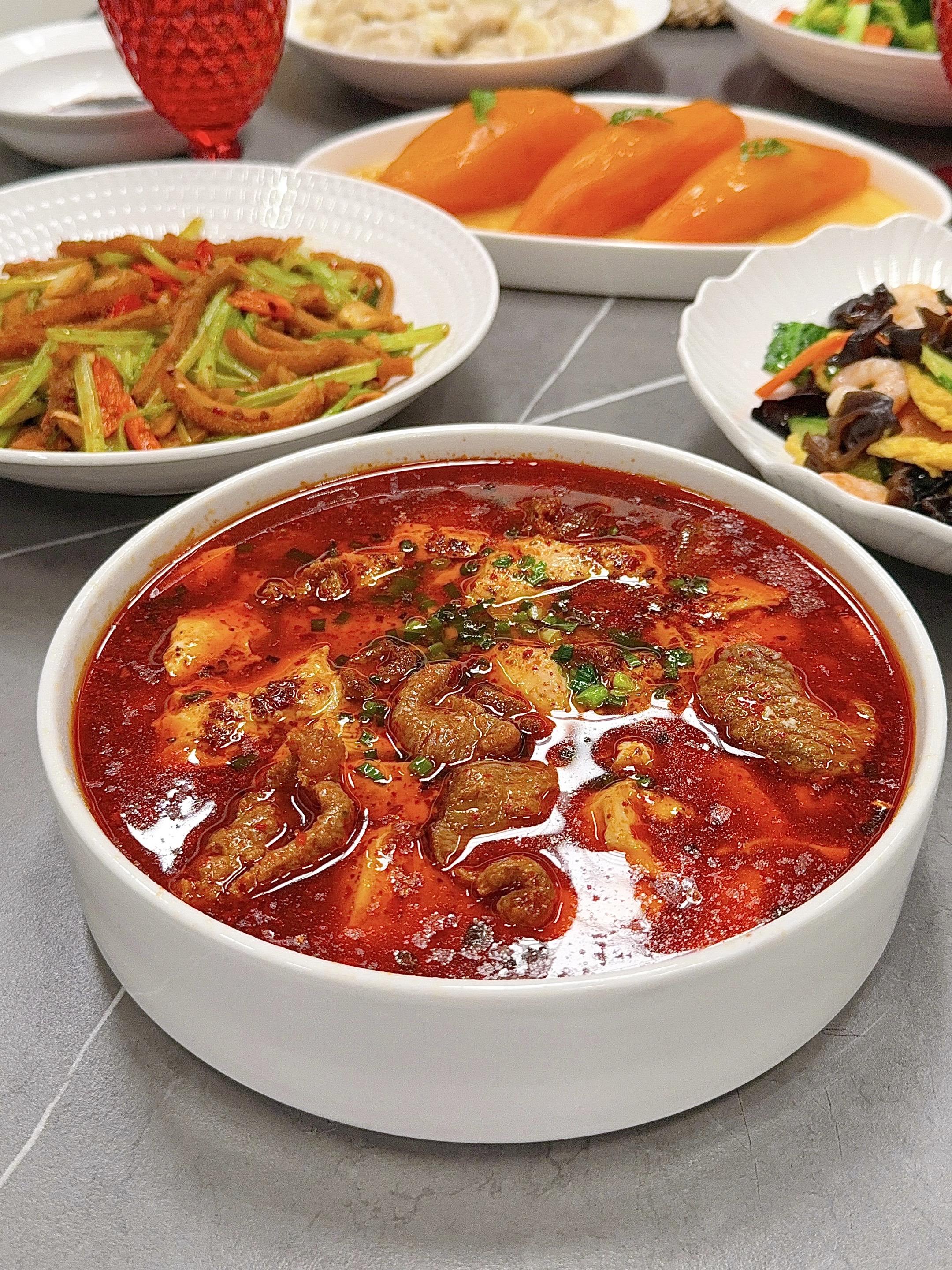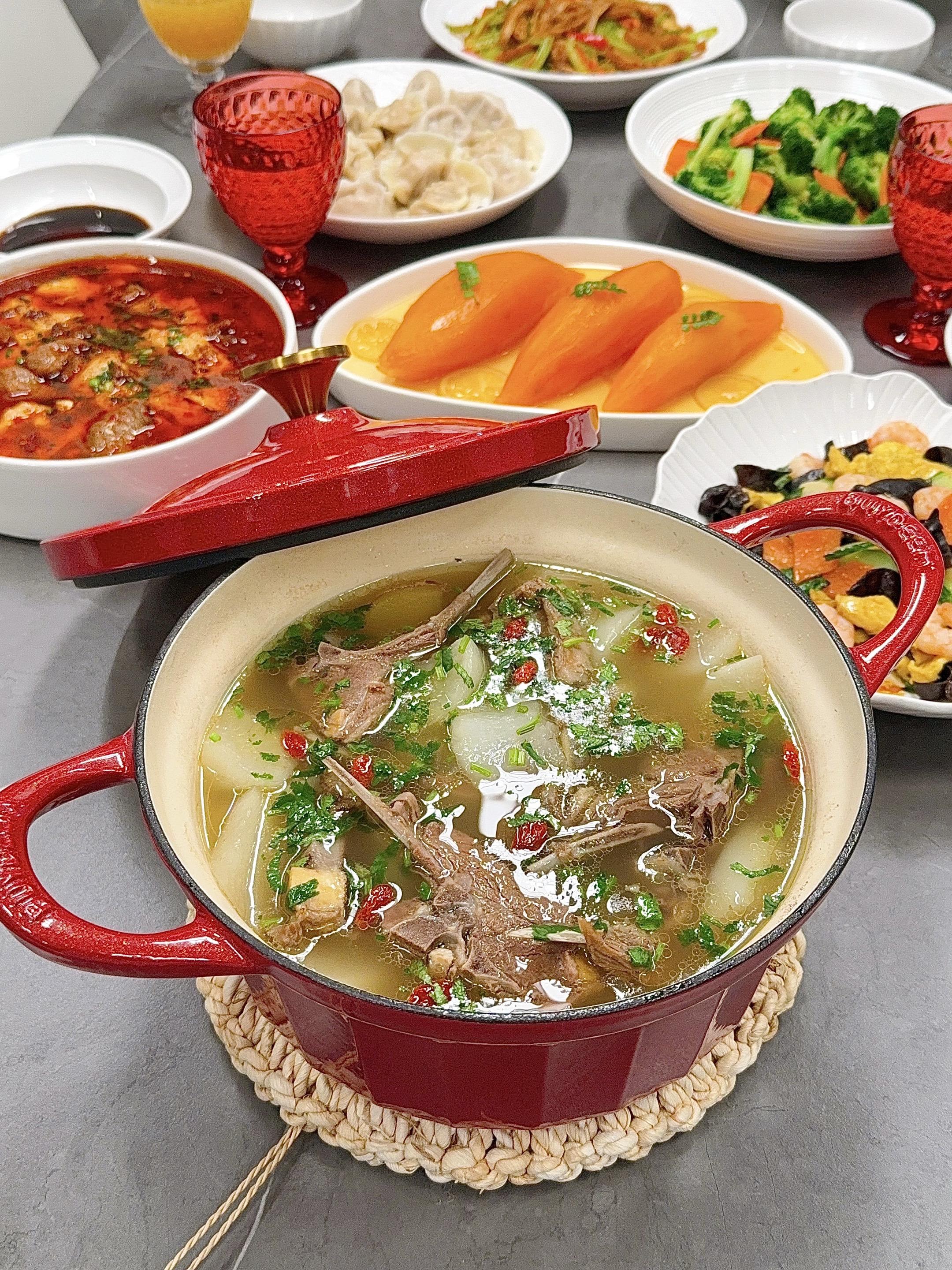 家宴分享🎉新年的氛围感从餐桌开始啦!家宴的意义从来不是盛宴,而是团圆。那些冒着热气的盘子,盛着的都是浓浓的爱意。新的一年,愿我们都能常回家吃饭,常坐在爱的人身边✨ 🧧新年家宴菜单分享: ❶【羊肉萝卜汤】 ❷【豆花牛肉】 ❸【什锦虾仁】 ❹【爆炒牛肚】 ❺【蜜汁红薯】 ❻【白灼西兰花】 ❼【猪肉白菜饺子】 🍒水果:车厘子
