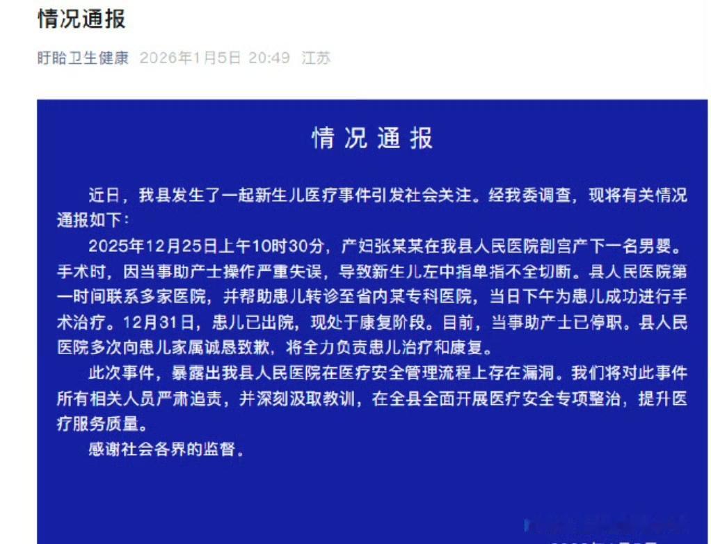 剪断男婴手指助产士已停职在手术室里是多严肃的事!怎么能这么业余呢?剪脐带可是基础