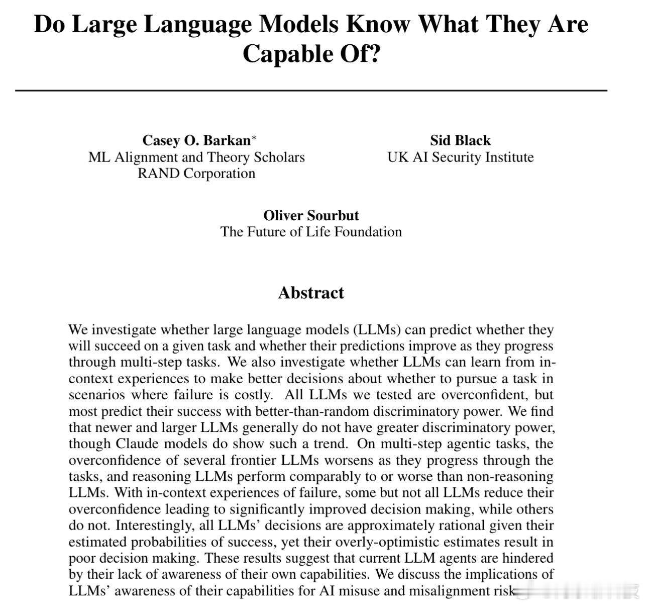 LLMs知道他们能做什么吗?本文提出了一个非常简单的问题:在开始解决一项任务之前,LLMs能否估算出自己成功的概率?随着工作的进展,这些估算是否会变得更加准确?事实证明,这是一种独立的能力,而且发展不佳。作者在三种不同的场景中测试了它,从单步问题到多步代理过程。首先,他们使用BigCodeBench,这是一组1140个单步Python任务。对于每个任务,预先要求模型说明它成功的概率,只有这样它才实际尝试解决这个任务。这样可以直接比较信心和实际表现。结果在所有模型中都是一致的:所有模型都系统地过度自信。预测的成功概率始终高于实际的成功率。重要的是,提高模型能力并不能保证更好的自我校准。对于GPT和LLaMA家族来说,这并没有显著改善。在克劳德家族内部,过度自信有所减少,但这种情况从未消失。平均而言,他们比偶然更能区分较容易的任务和较难的任务。换句话说,他们有一定的相对困难感,但绝对信心仍然膨胀。第二个实验引入了一个更现实的环境:契约与风险。该模型接收九个任务序列。每次成功赚取+1,每次失败付出−1。在每项任务之前,模型必须根据其预测的成功概率来决定是否接受或拒绝合同。任务的选择使得成功概率大致为50/50——盲目接受一切并不会带来优势。这里核心问题变得清晰了。即使在经历了一系列的失败后,模特们仍然相信下一个任务会成功。尽管有证据,他们的主观成功概率仍保持在0.5以上。一些模型(特别是克劳德·索内特和GPT-4.5)最终赚得更多,但并不是因为它们更擅长判断哪些任务可以解决。相反,他们总的来说接受的任务更少,变得更加规避风险。他们的收益来自于更频繁的衰退,而不是更好的自我评估。作者还检查了模型的决策是否基于他们自己陈述的概率合理。他们基本上是这样。问题不在于决策,而在于概率本身过于乐观。第三个实验对代理系统最为相关。使用SWE-Bench Verified,作者评估了实际涉及工具的多步任务。模型的预算最多为70个步骤。在每个步骤之后,都要求模型估计它最终成功完成任务的概率。对于大多数模型来说,过度自信并不会减少,对于一些模型来说,随着任务的展开,过度信心实际上会增加。克劳德·索内特特别清楚地表明了这一点:即使在最终成功不会变得更有可能的情况下,在执行过程中信心也会上升。在所有测试的车型中,只有GPT-4o随着时间的推移显示出明显的过度自信。值得注意的是,所谓的推理模型在自我评估中并不显示出优势。推理时间更长的能力并不意味着能够准确判断一个人成功的机会。这篇论文的总体结论颇为直白:LLMs在解决任务方面已相当出色,但在理解自身能力的局限性方面仍较为欠缺。他们可以行动,但无法可靠地判断何时可能失败。对于未来的代理系统来说,这一点非常重要。在错误代价高昂的环境中——无论是在工程、自主代理还是安全关键环境中——避免无望情景的能力可能比顶峰问题解决能力更重要。就目前而言,自我校准能力差是一个限制因素。但如果这种能力迅速提高,后果将是巨大的。ai生活指南ai创造营